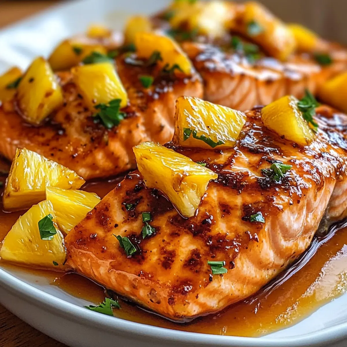Garnisiere den Lachs mit frischer Petersilie und löffle die verbleibende Glasur über die Filets. Serviere den Ananas-Glasierte Lachs nach Belieben mit Beilagen wie Reis oder Gemüse. Dieses Gericht ist nicht nur ein kulinarischer Genuss, sondern auch ein echter Hingucker auf dem Tisch!