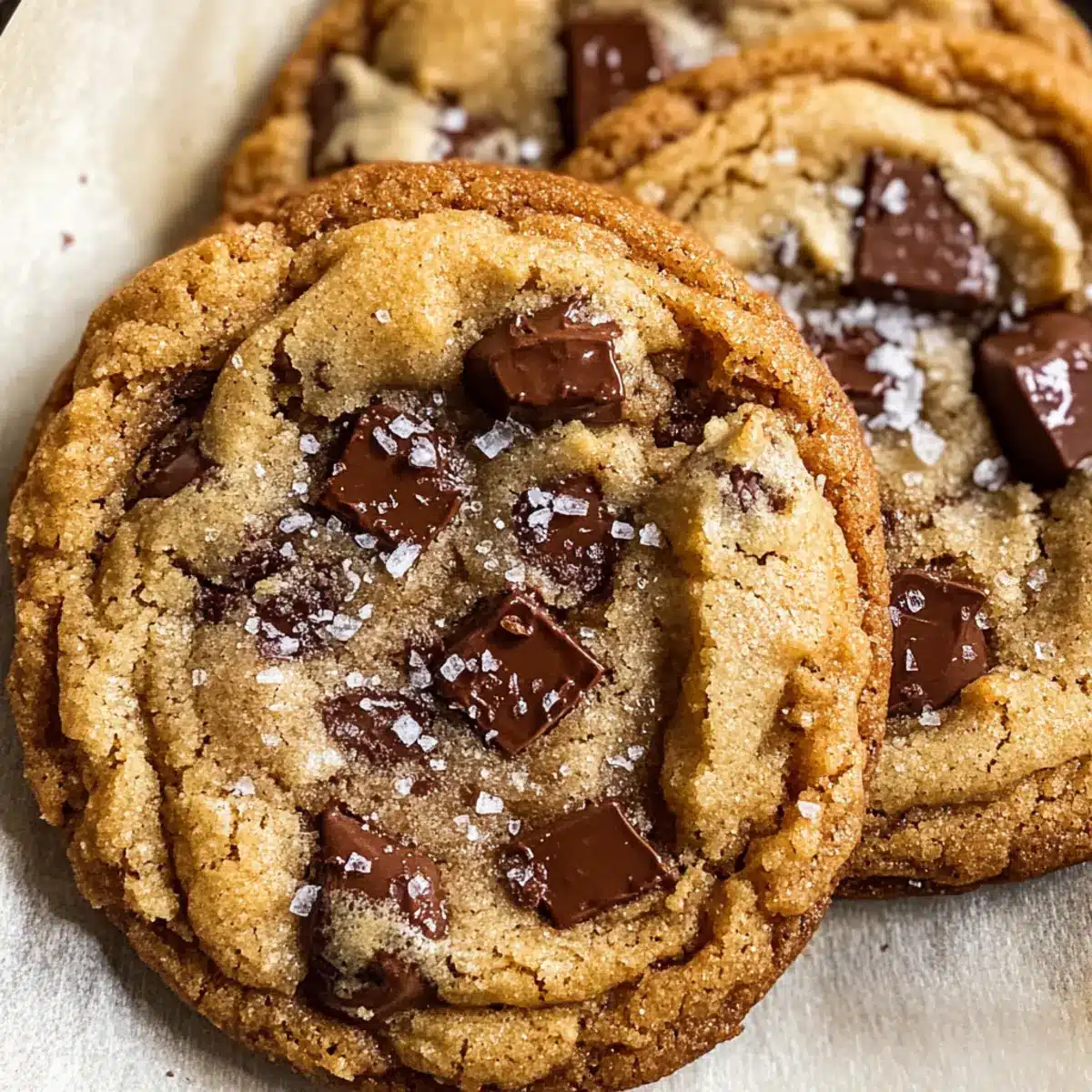 Sobald die Kekse herausgenommen werden, bestreue sie sofort mit etwas flakigem Meersalz für den perfekten salzigen Kontrast zur Süße. Lass sie für etwa 2 Minuten auf dem Backblech abkühlen, bevor du sie vorsichtig auf ein Kuchengitter überträgst, um vollständig auszukühlen.
