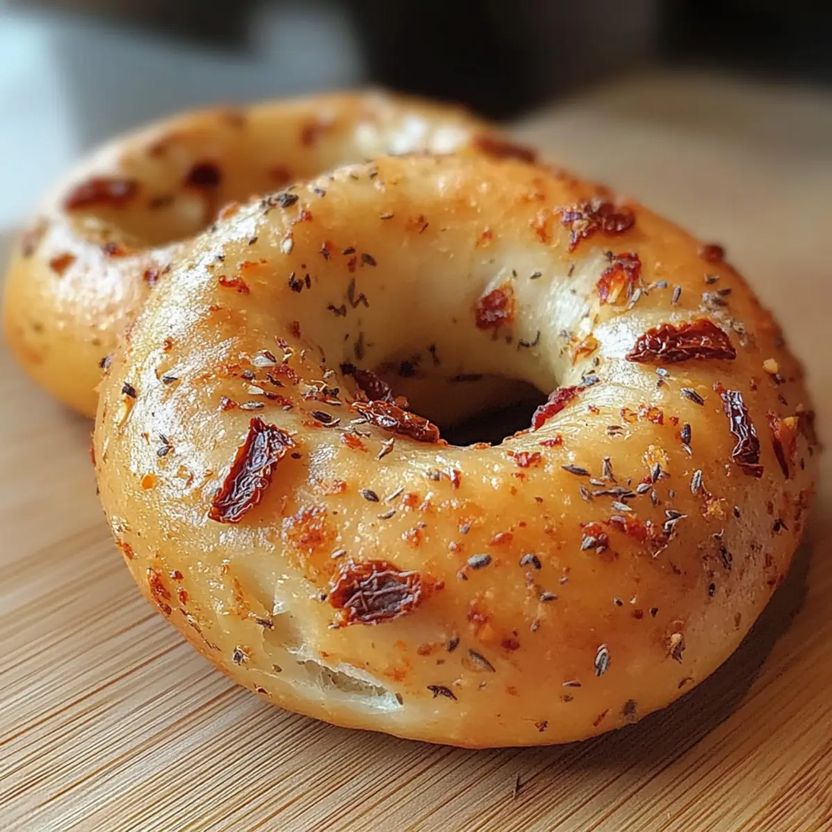 Handwerkliche sonngetrocknete Tomaten Bagels selbstgemacht