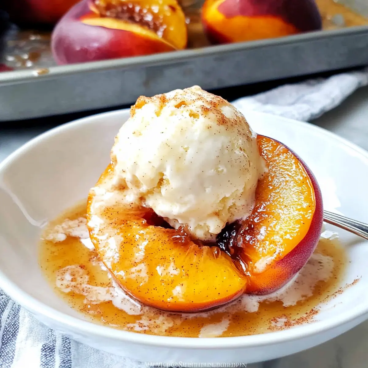 Zimt Zucker Gebackene Pfirsiche mit Vanilleeis