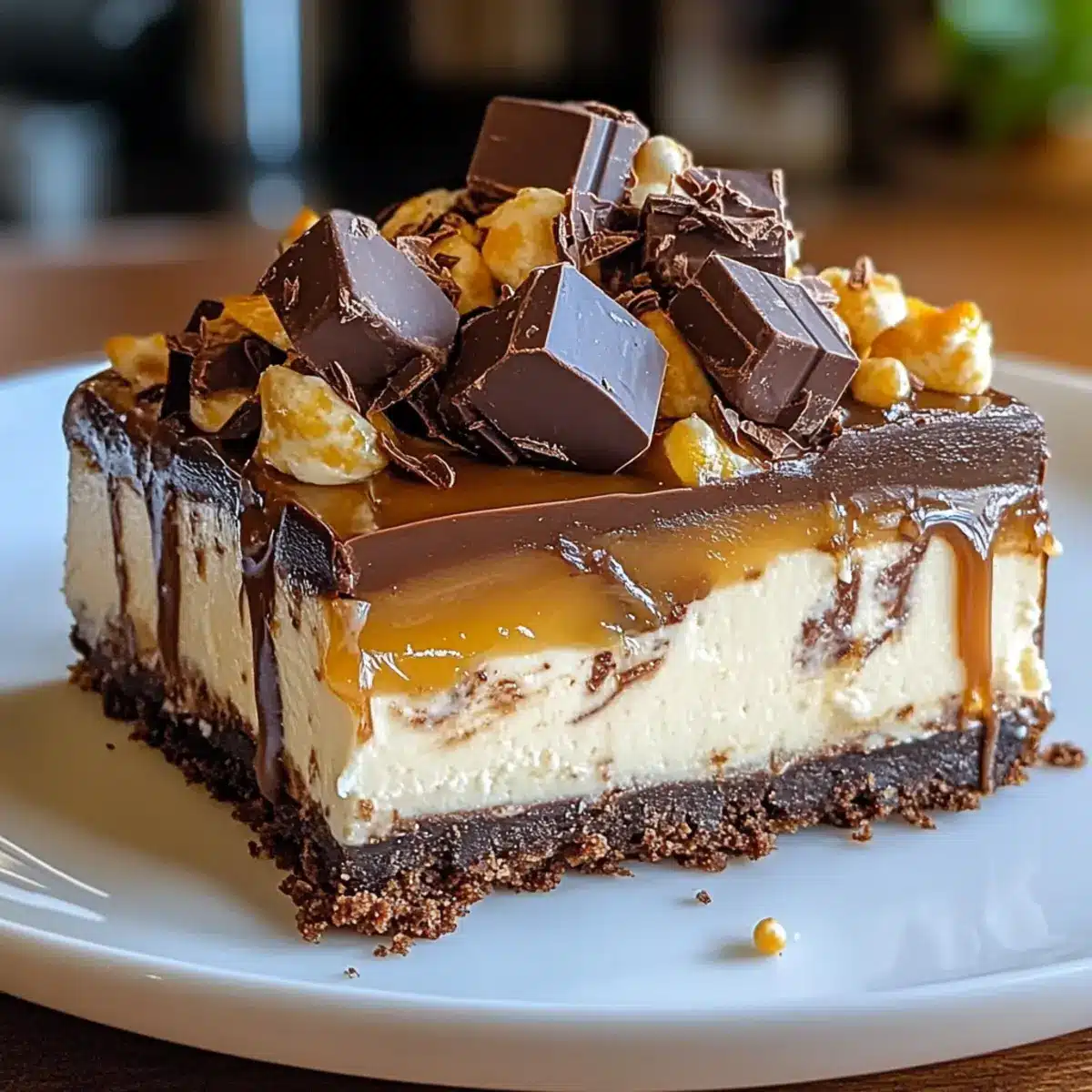 Schokoladen-No-Bake-Twix-Käsekuchen für Naschkatzen