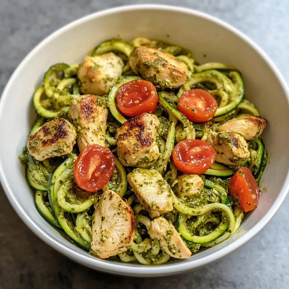 Leckere Pesto-Zucchini-Nudeln mit Hähnchen ganz einfach