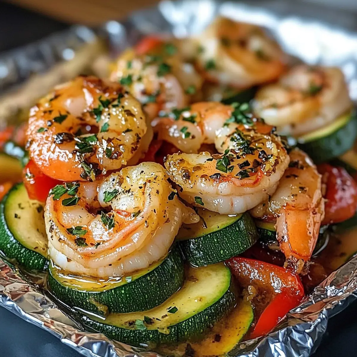 Keto Zitronenbutter Knoblauch Garnelen in Folie
