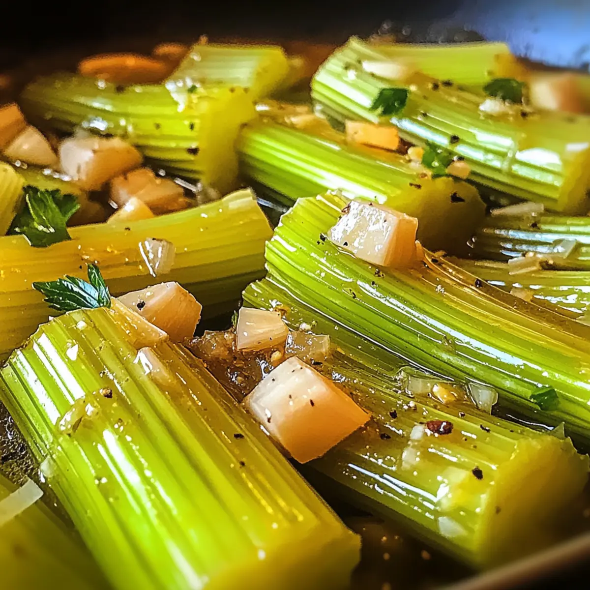 Geschmortes Sellerie mit Knoblauch und Butter genießen