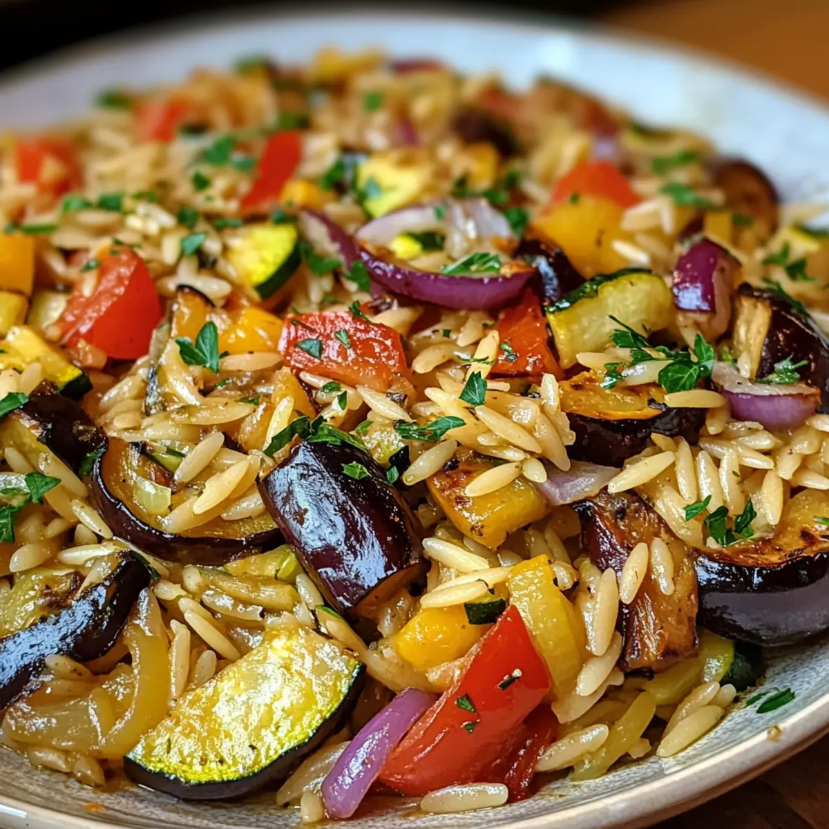 Gesunde geröstete Gemüse-Orzo für jeden Tag