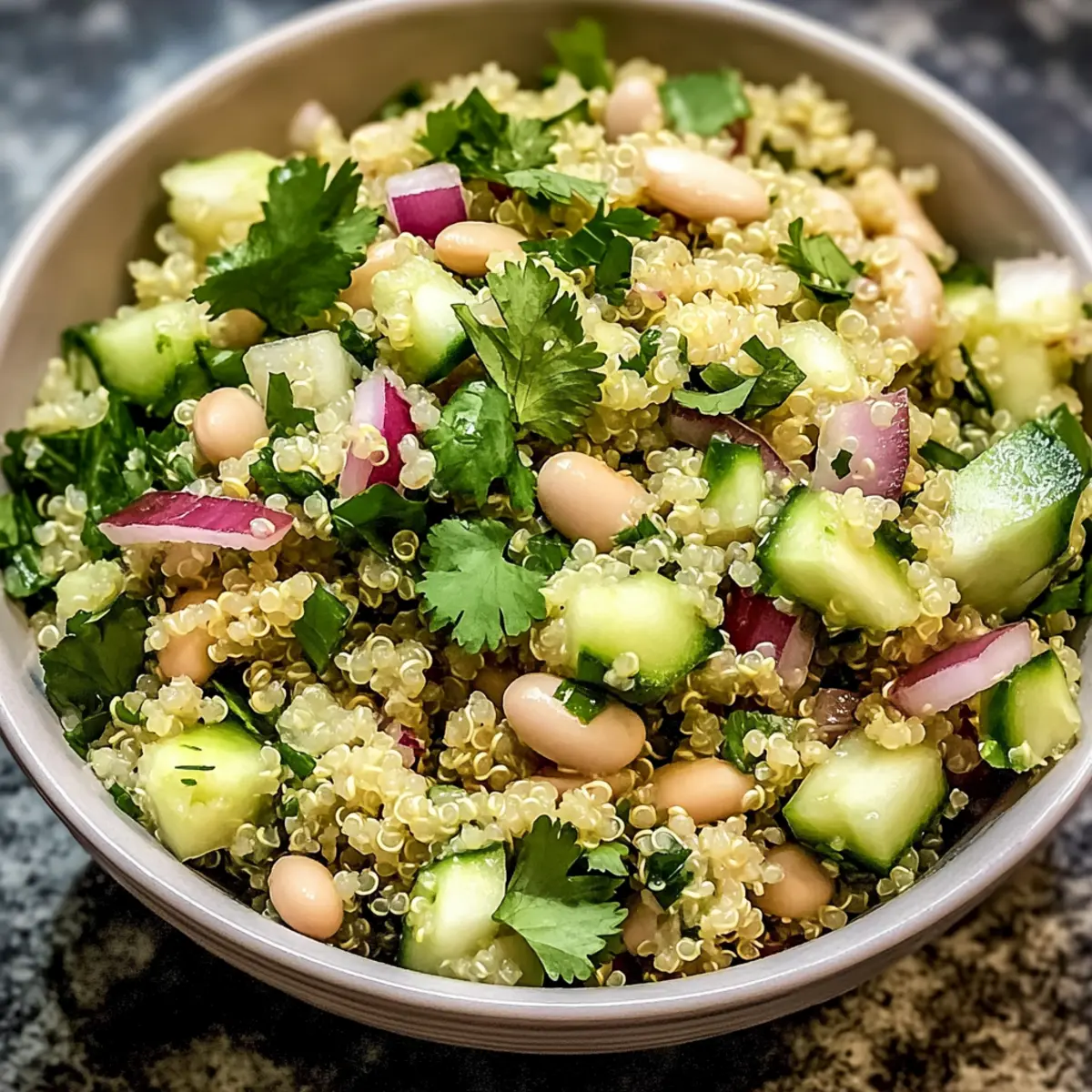Koriander Limette Quinoa Salat mit weißen Bohnen frisch und lecker
