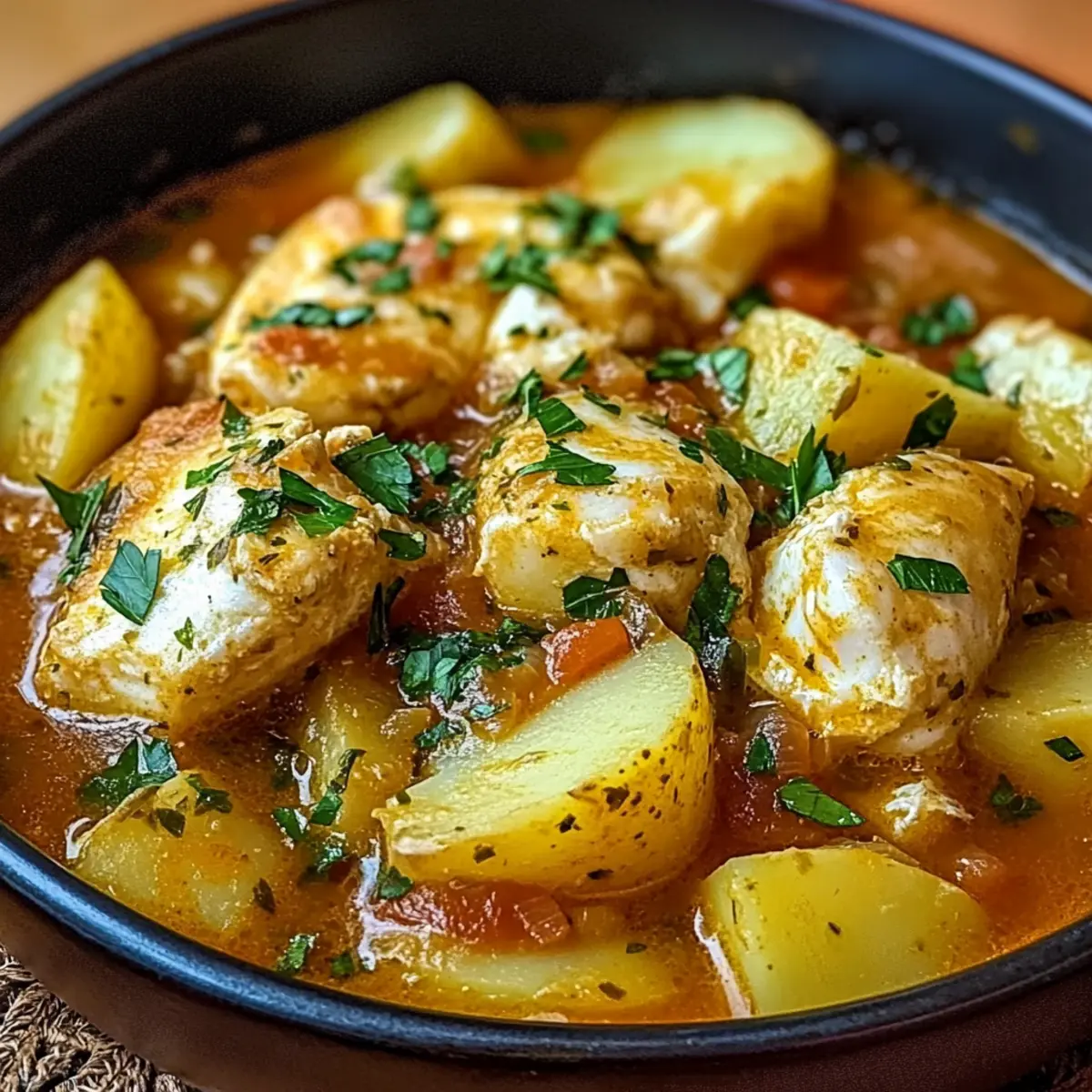 Spanischer Fischeintopf mit Kartoffeln für Zuhause