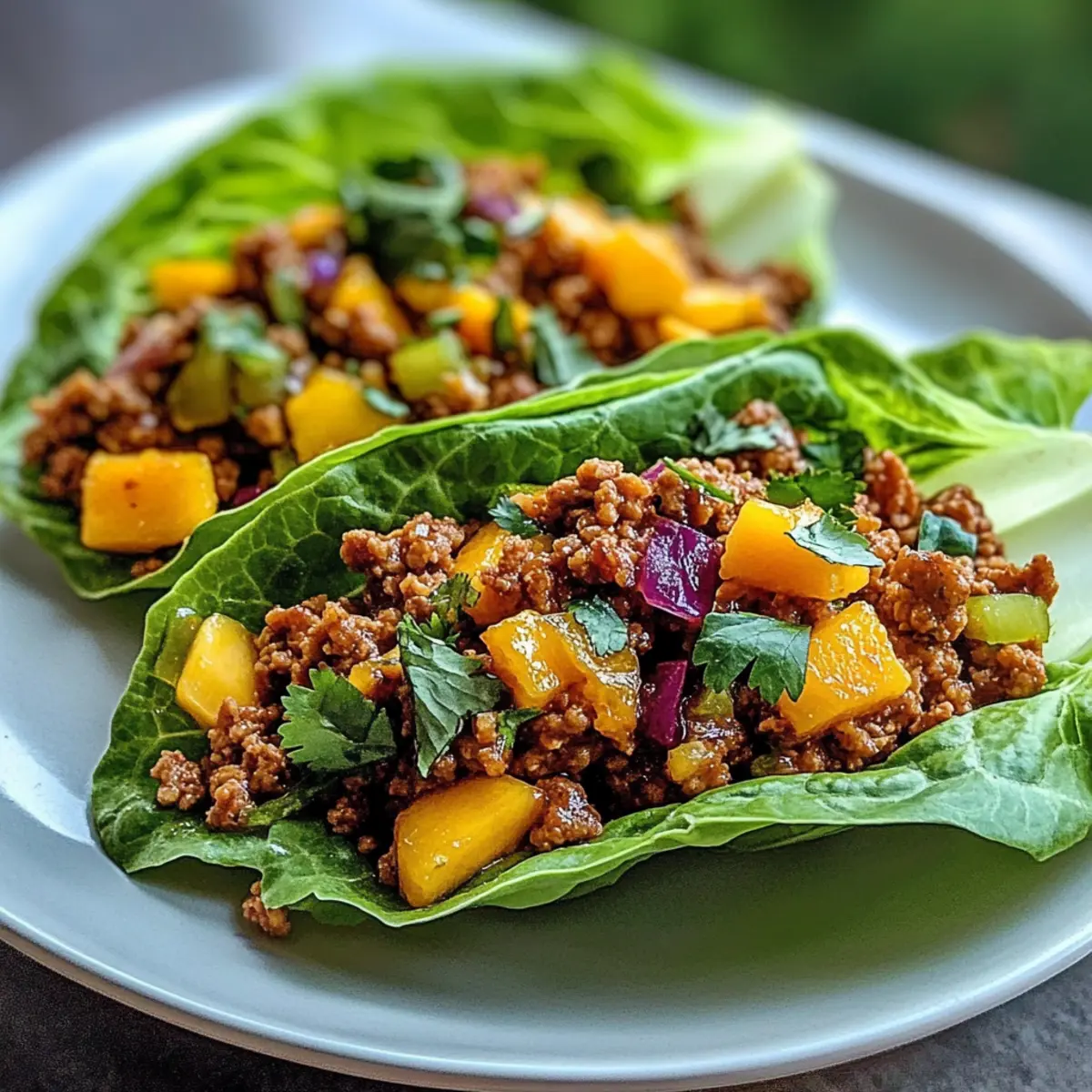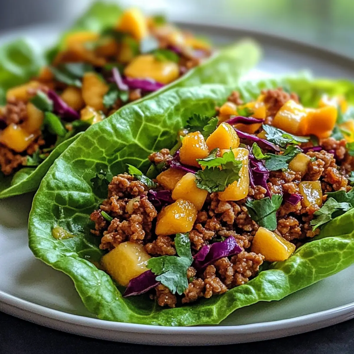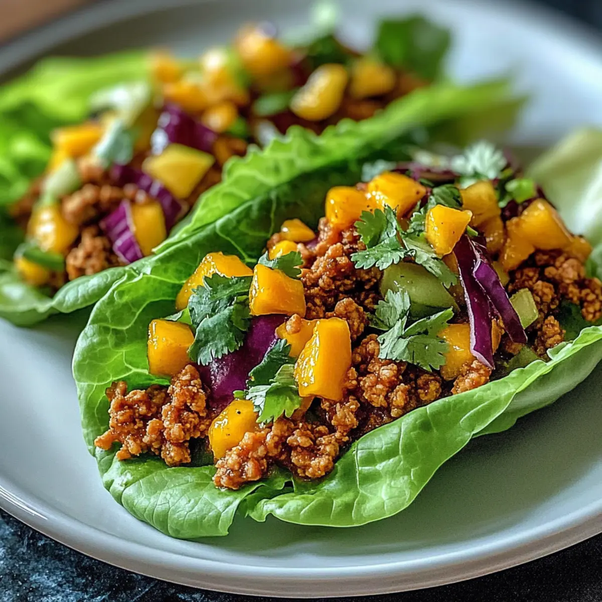 Frische Aromen: Diese Dünnen würzigen Puten-Lettuce-Tacos verbinden die pikanten Aromen von magerem Putenfleisch mit einer süßen, erfrischenden Mangoslaw, die jedem Biss Leben einhaucht.