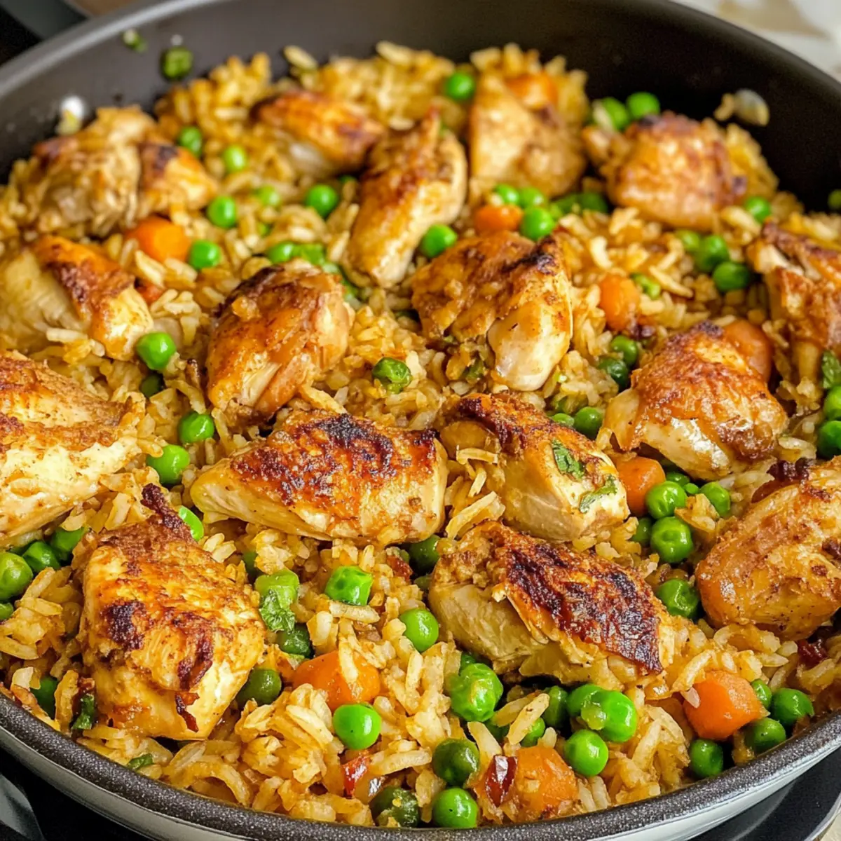 - Hühnchen gleichmäßig garen: Achte darauf, die Hähnchenstücke gleichmäßig zu bräunen, damit sie alle Aromen des Ein-Topf-Hühnchen und Reis aufnehmen.