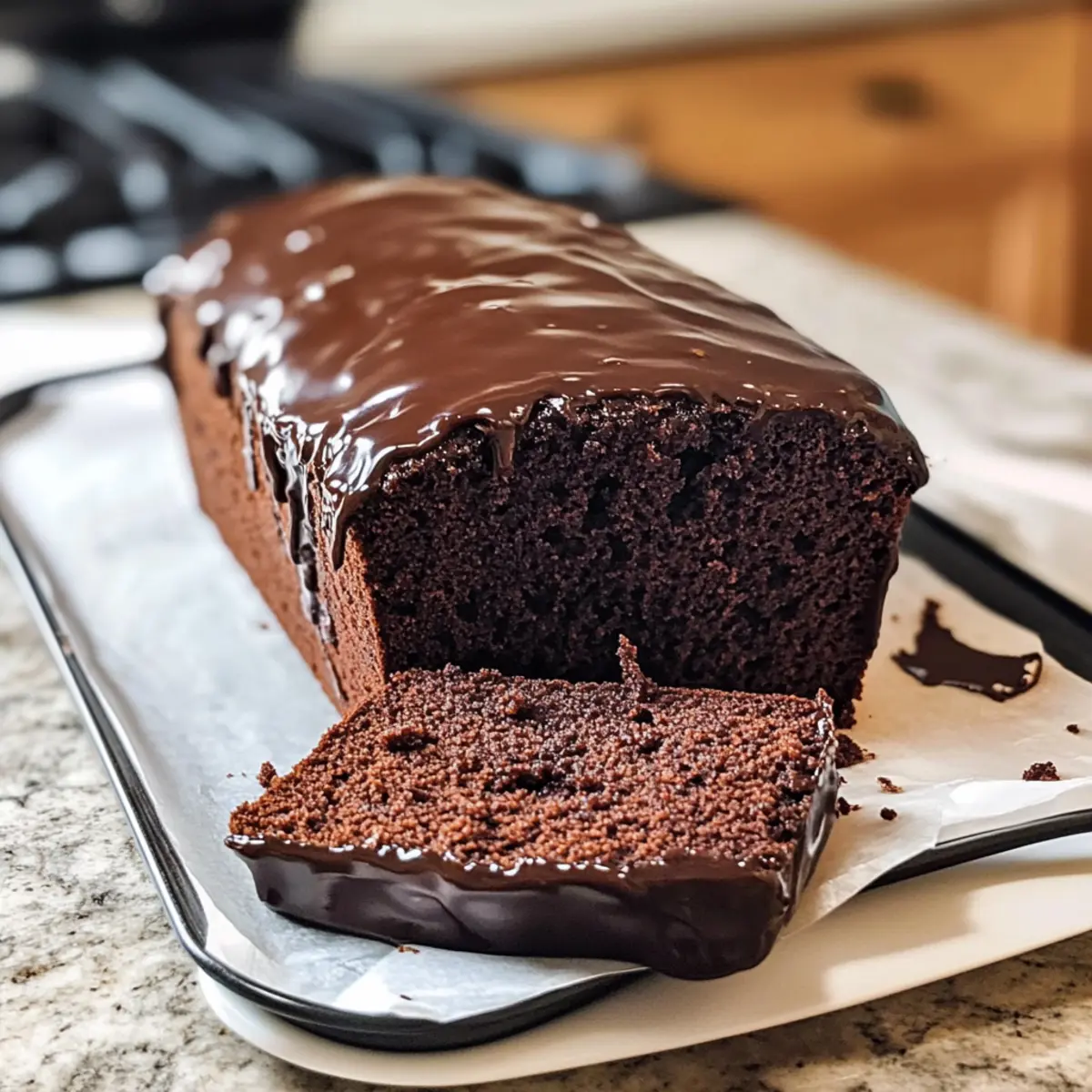 Feuchter Schokoladenkuchen gebacken in der Kastenform