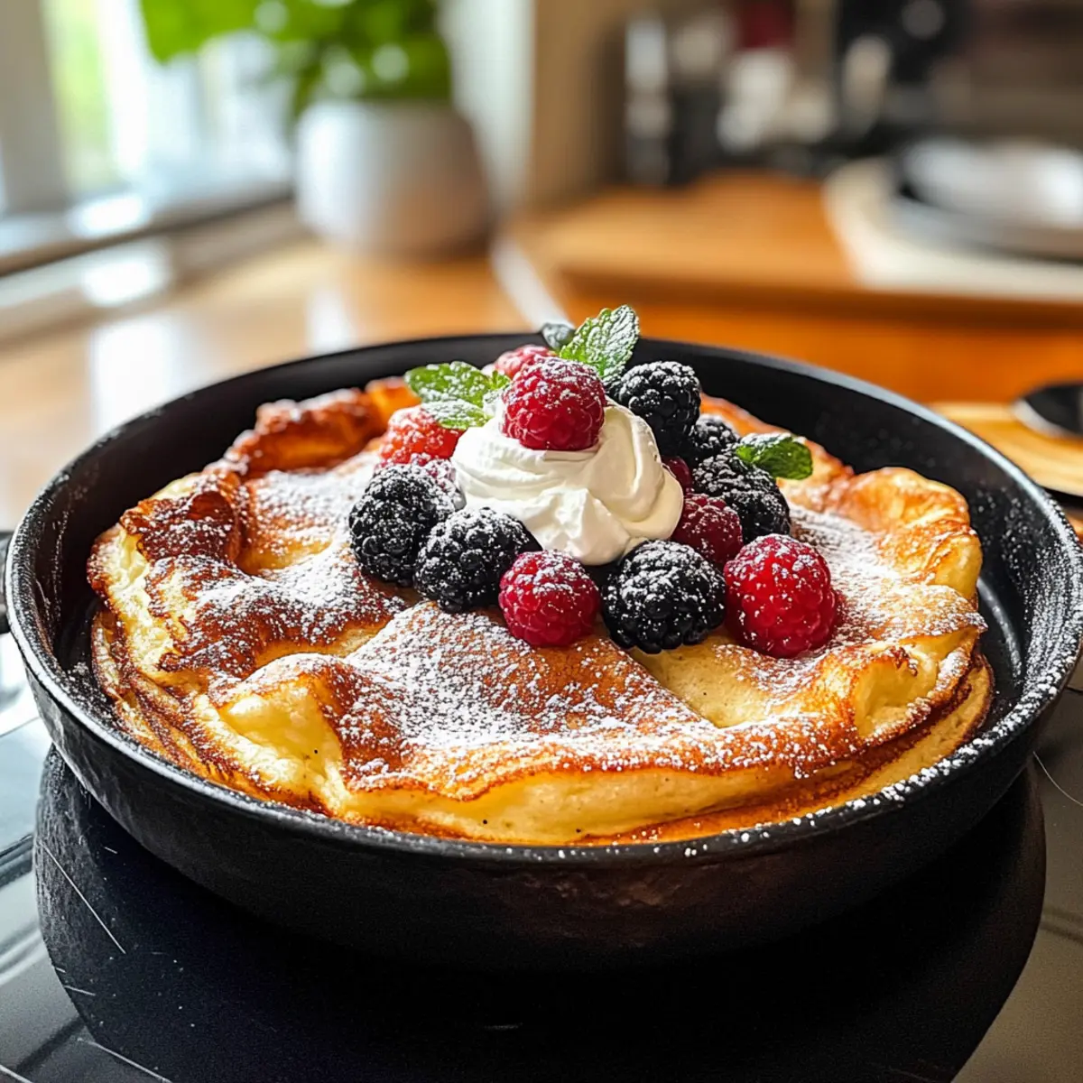Aromatische Verführung: Wenn der Dutch Baby Pfannkuchen im Ofen backt, wird Ihr Zuhause von einem verführerischen Duft erfüllt, der jeden an den Frühstückstisch lockt.
