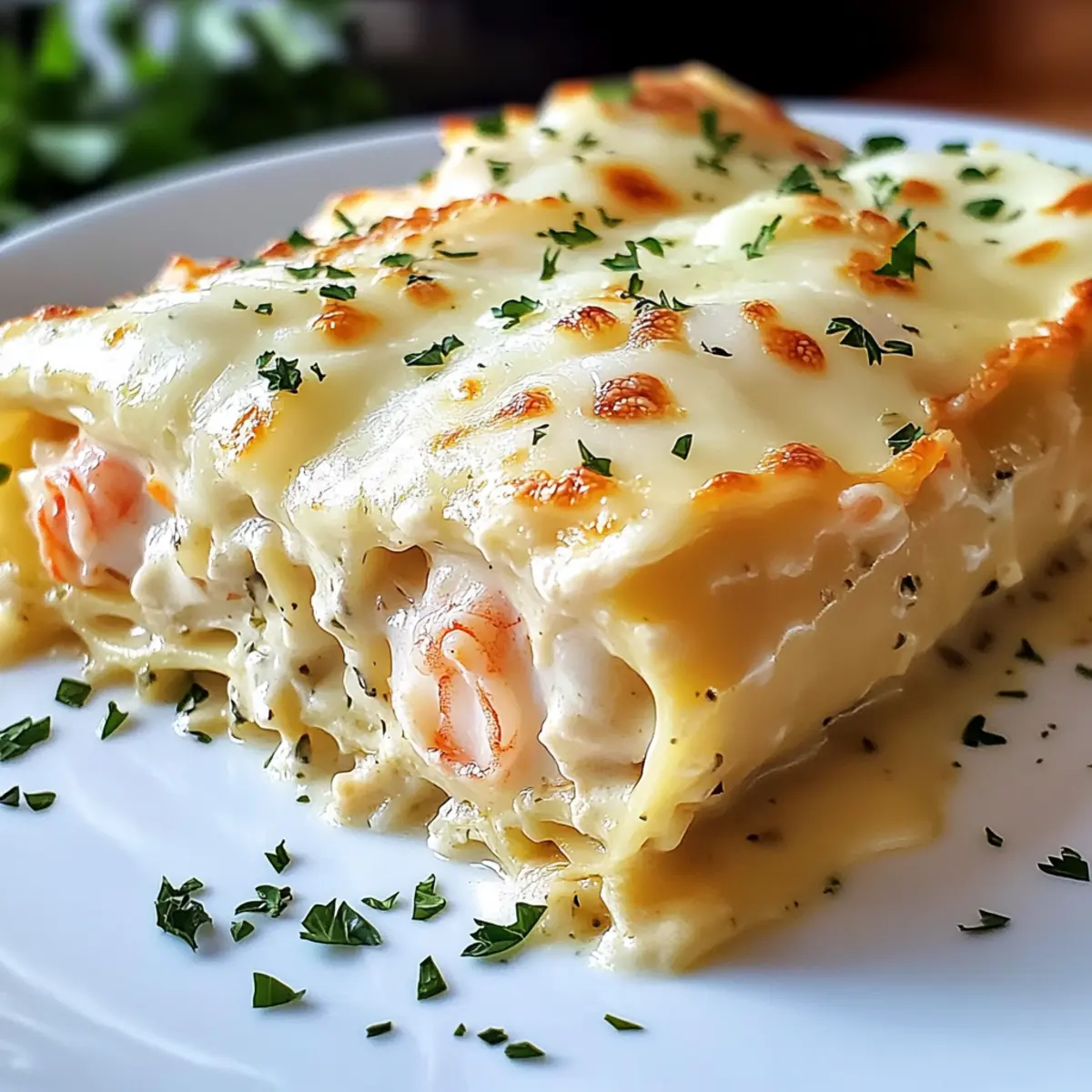 Die Garnelen- und Krabben-Alfredo-Lasagne-Rolle wird nicht nur dein Herz, sondern auch deinen Gaumen erobern!