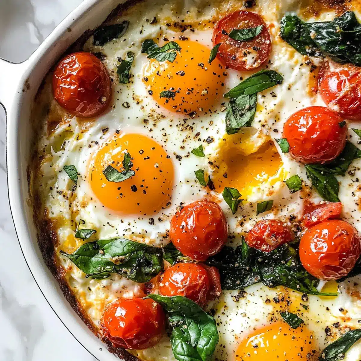 Diese Gebratene Feta-Eier Rezept sind ideal für die Meal Prep, da mehrere Komponenten im Voraus zubereitet werden können. Sie können das Gemüse (Kirschtomaten, Paprika, Zwiebeln und Spinat) bis zu 3 Tage im Kühlschrank aufbewahren, während der Feta ebenfalls leicht vorzubereiten ist. Um die Qualität zu erhalten, bewahren Sie alles in luftdichten Behältern auf und mischen die Zutaten kurz vor dem Backen. Wenn Sie bereit sind zu servieren, heizen Sie den Ofen auf 200°C vor, kombinieren das vorgebereitete Gemüse mit dem Feta und schlagen die Eier in die Vertiefungen, bevor Sie das Ganze für 10 Minuten backen. So genießen Sie ein köstliches Gericht mit minimalem Aufwand an einem geschäftigen Morgen!