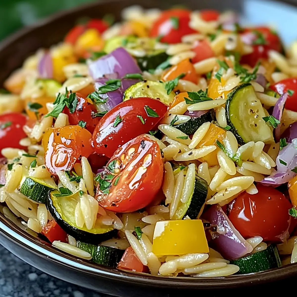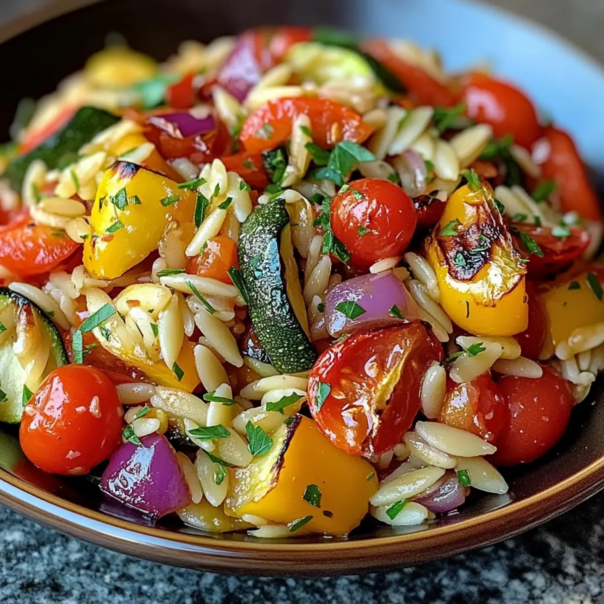 Mit diesen Zutaten ist dein Geröstetes Gemüse Orzo ein wahrer Genuss, der die Sinne belebt!