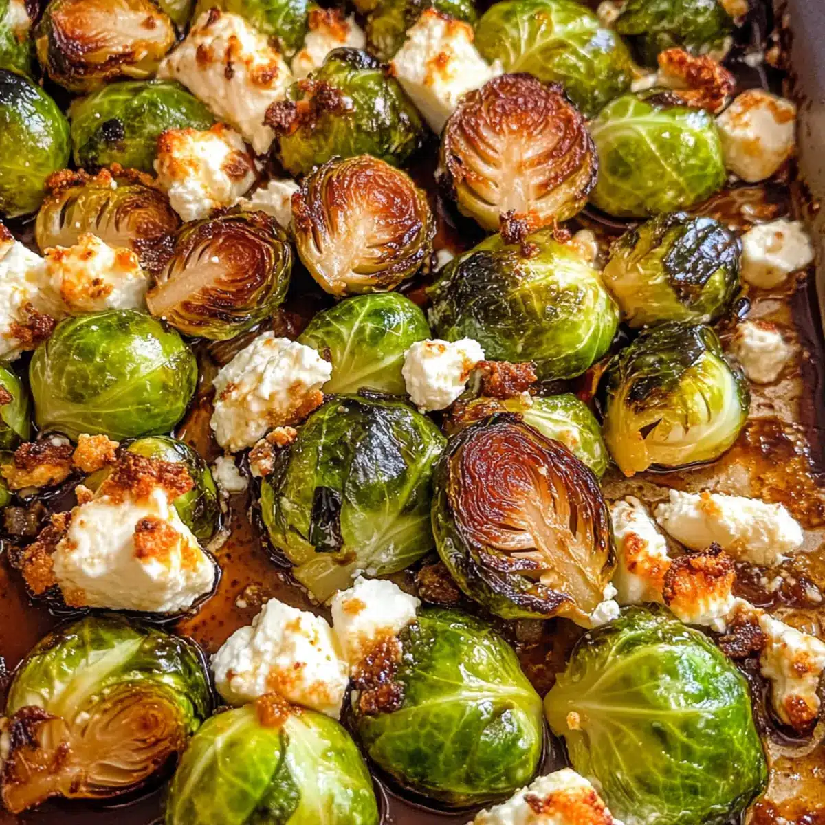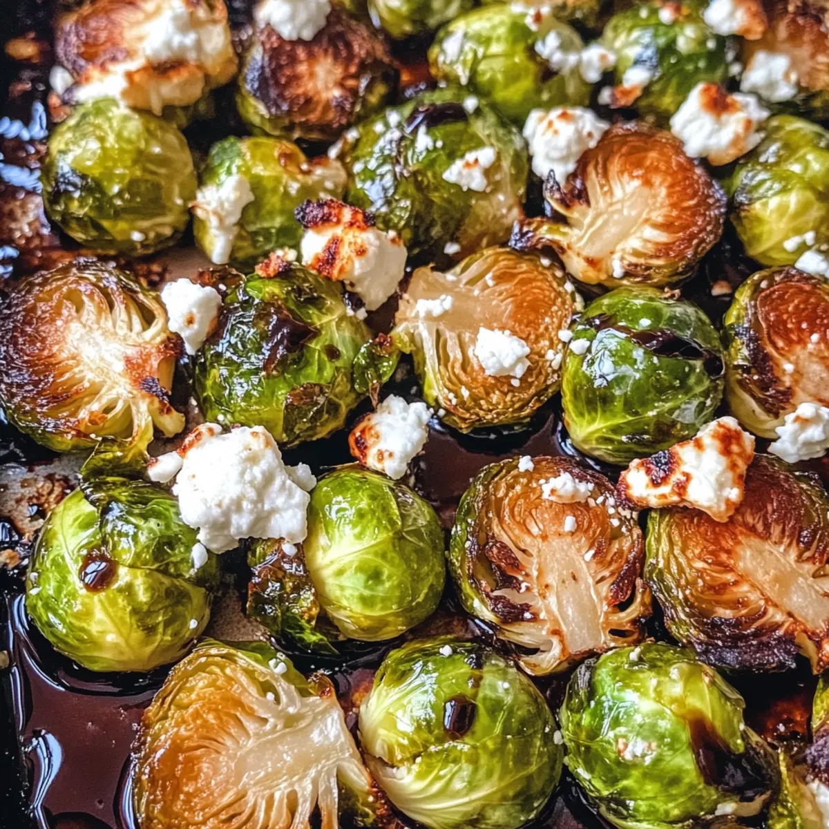 - Lass die Gerösteten Rosenkohl mit Feta kurz ruhen und träufle dann den Balsamico-Glanz darüber.