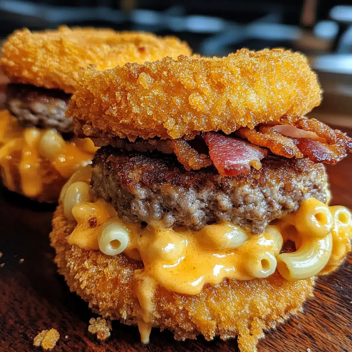 Unvergleichlicher Genuss: Diese Käse Bacon Mac Burger gefüllte Zwiebelringe bieten eine einzigartige Geschmackskombination, die jedem Gaumen schmeichelt.