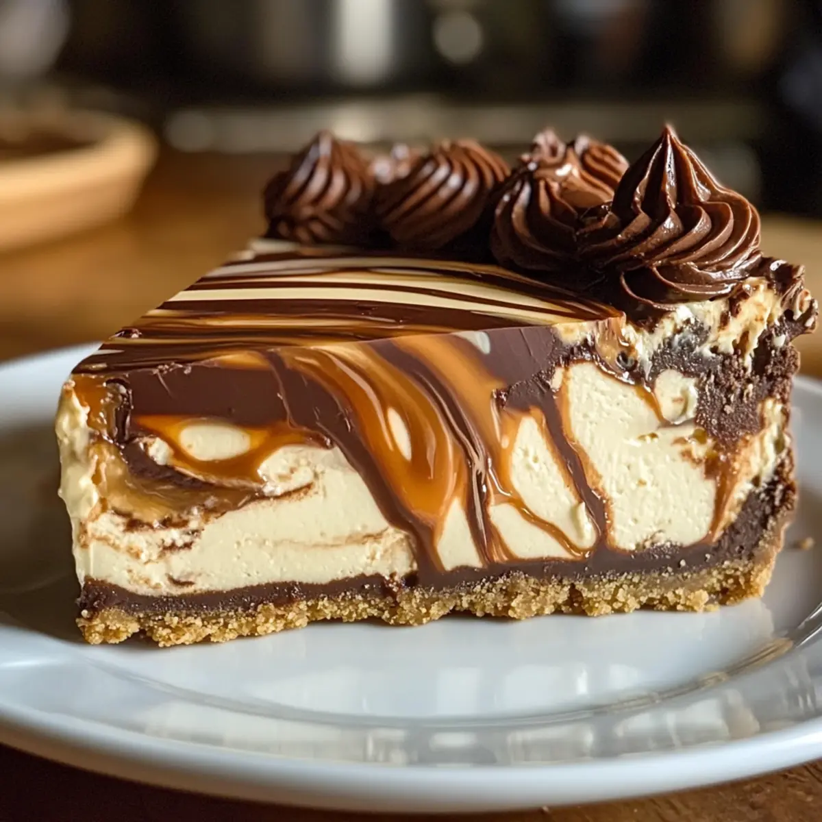Vor dem Servieren dekorieren Sie den Käsekuchen mit einer Schicht Schlagsahne und einem Schuss zusätzlicher Karamellsauce. Der Karamell Schokoladen Kaffee Käsekuchen sieht nicht nur fantastisch aus, sondern schmeckt auch himmlisch und wird Ihre Gäste begeistern.