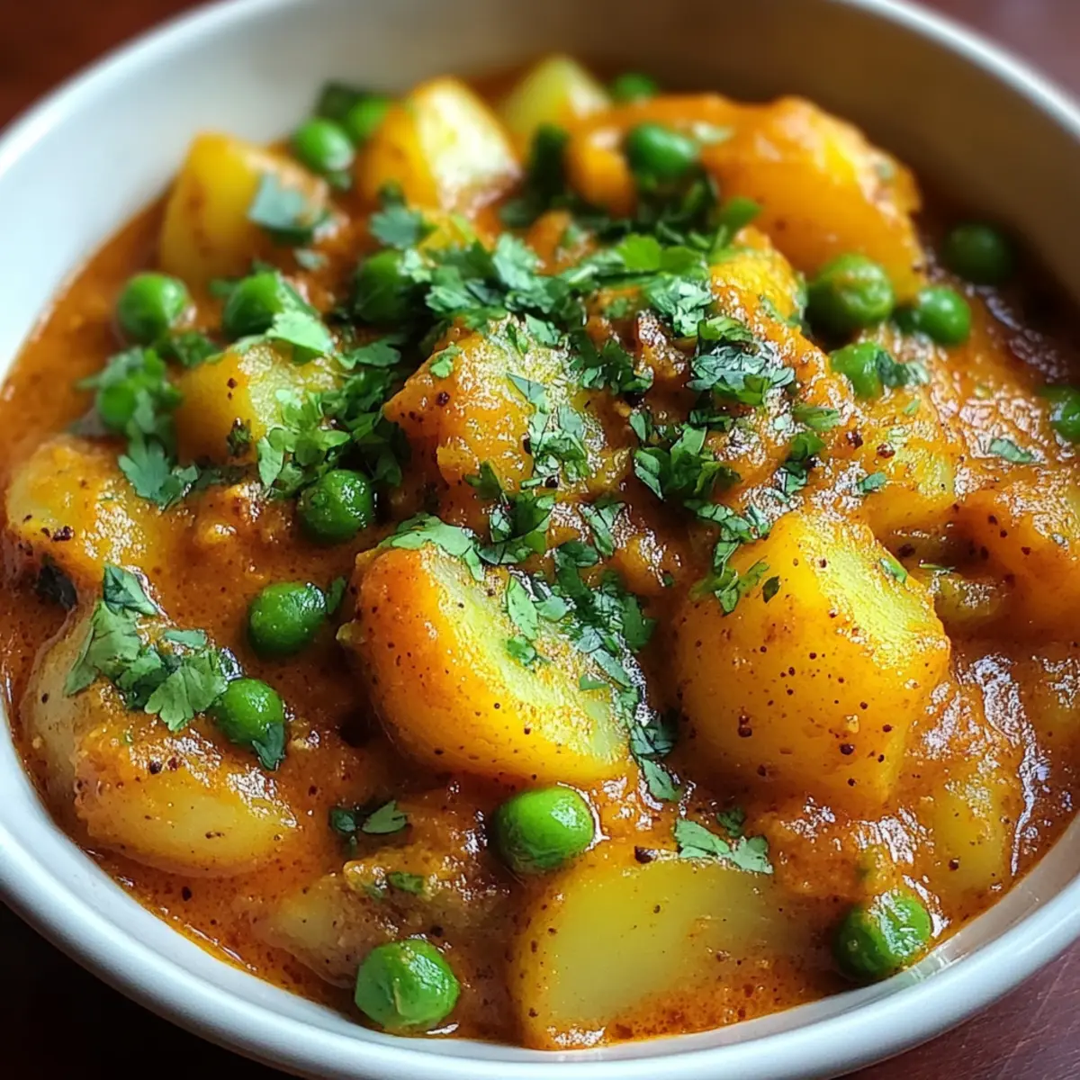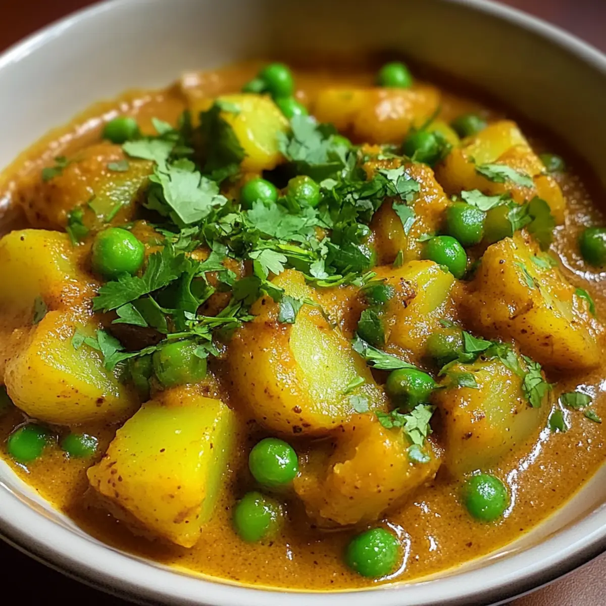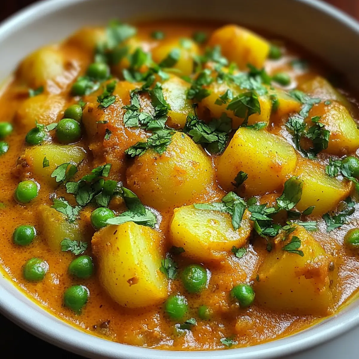 Erlebe das leckere Kartoffelcurry mit Erbsen und genieße diese einfache und köstliche vegetarische Option!