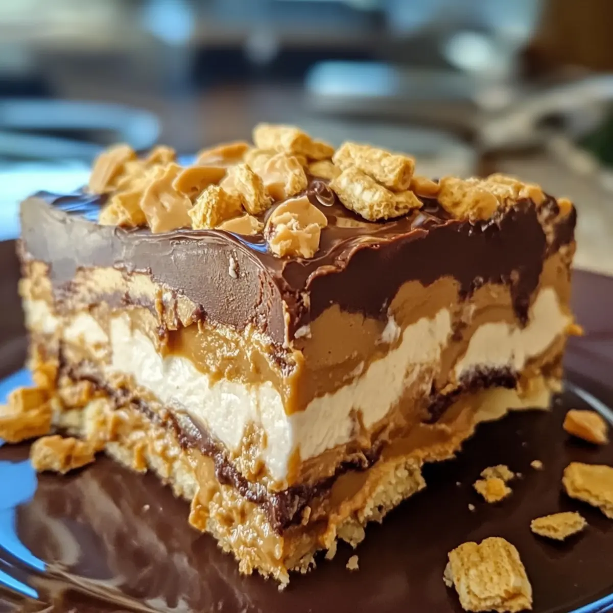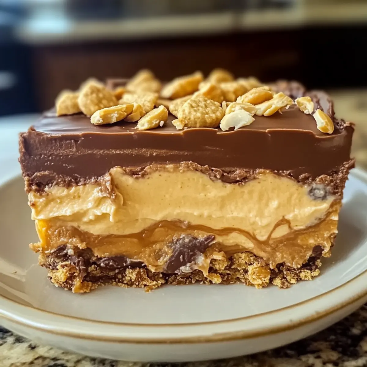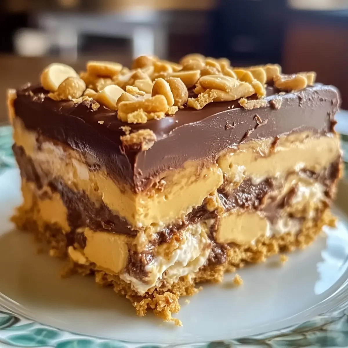 Genießen Sie Ihre selbstgemachte Kein-Backe Erdnussbutter Lasagne, die allen Schokoladenliebhabern ein Lächeln ins Gesicht zaubert!