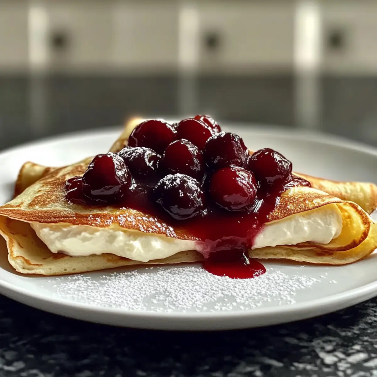 Beerenmix: Tausche Kirschen gegen Beeren wie Himbeeren oder Erdbeeren für ein fruchtiges Erlebnis. Diese frischen Aromen verleihen den Crepes eine lebendige Note.