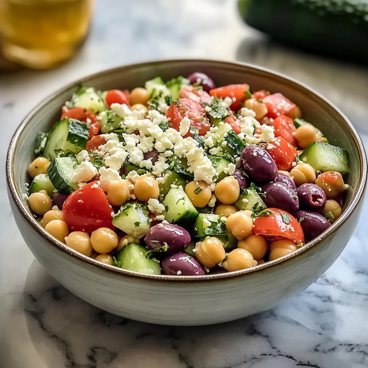 Frische Aromen: Der Klassische mediterrane Kichererbsensalat kombiniert knackige Gurken, saftige Tomaten und aromatische Kräuter für einen unvergleichlichen Geschmack.