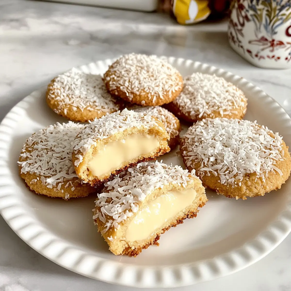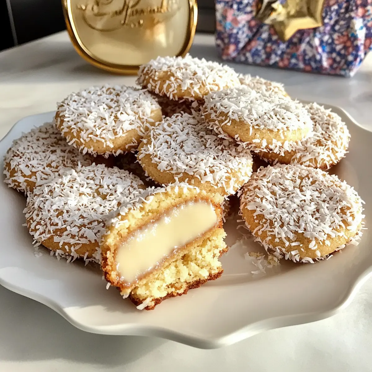 Cremiger Kern: Anstelle von Nussnougatcreme kannst du auch eine cremige Kokosnussfüllung verwenden. Das wird deine Kokoskekse noch köstlicher machen!