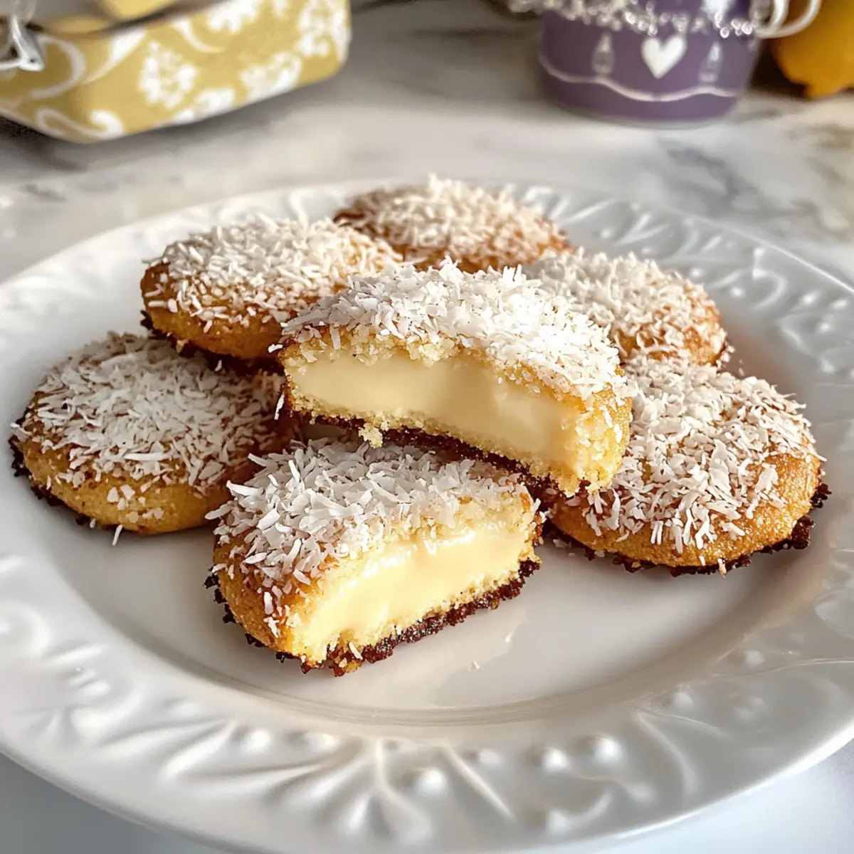 Kaffee oder Tee: Ein kräftiger Kaffee oder ein aromatischer Tee harmoniert perfekt mit der süßen Füllung und hebt die Aromen der Kokosplätzchen hervor.