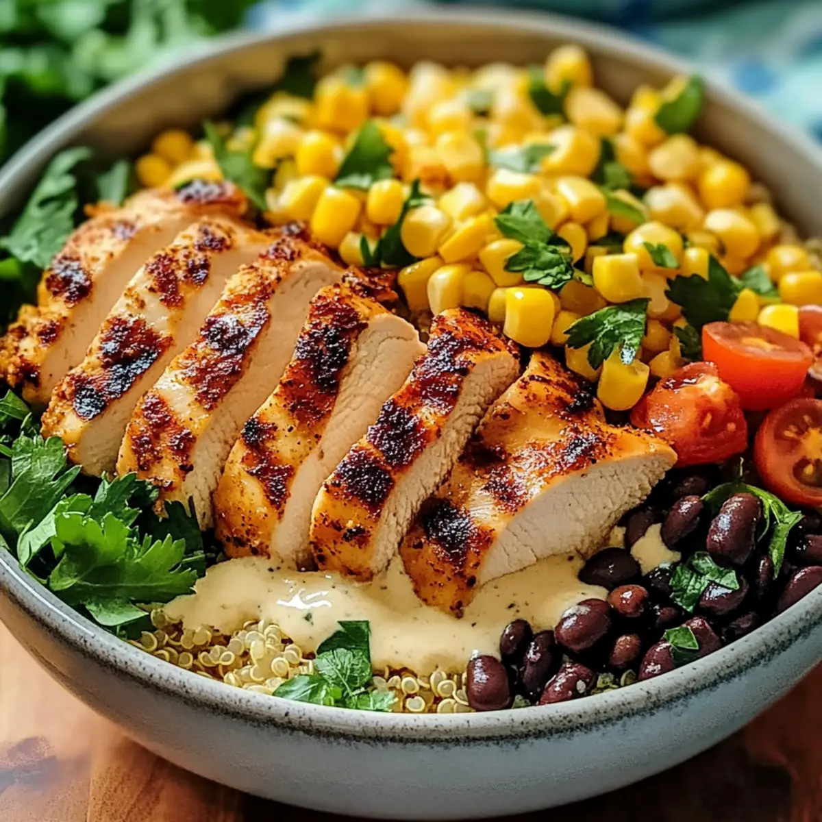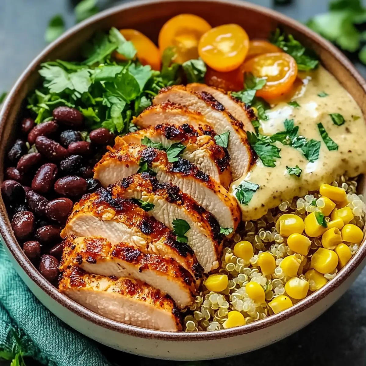 Entfalten Sie Ihre Kreativität in der Küche und passen Sie diese leckere Hähnchen- und Quinoa-Dinner-Schüssel nach Ihren Vorlieben an!