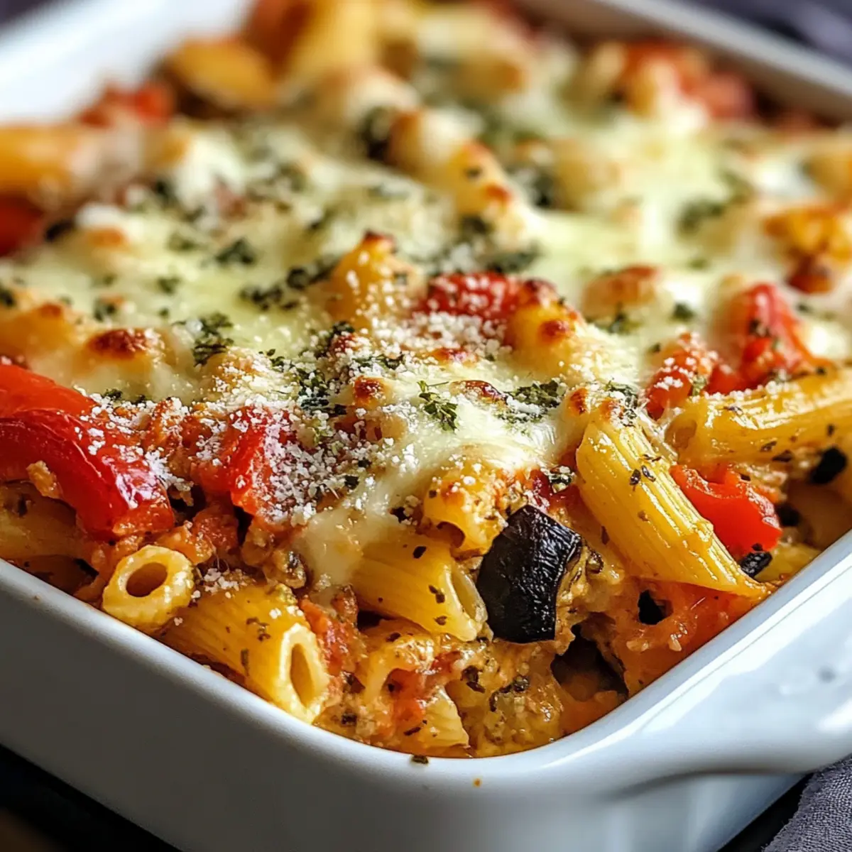 Lass den Gaumen vor diesem leckeren mediterranen Gemüsepasta-Auflauf tanzen!