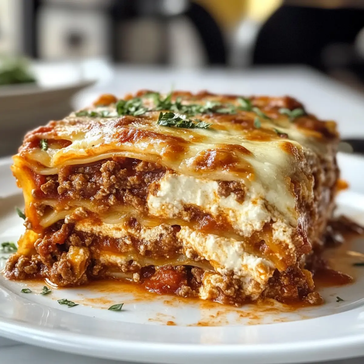Lasse die Lasagne nach dem Backen 10-15 Minuten ruhen, bevor du sie in Portionen schneidest. Dies hilft, die Schichten zu setzen, sodass du perfekte Stücke erhältst. Der Duft, der während dieses Prozesses freigesetzt wird, ist ein Genuss!