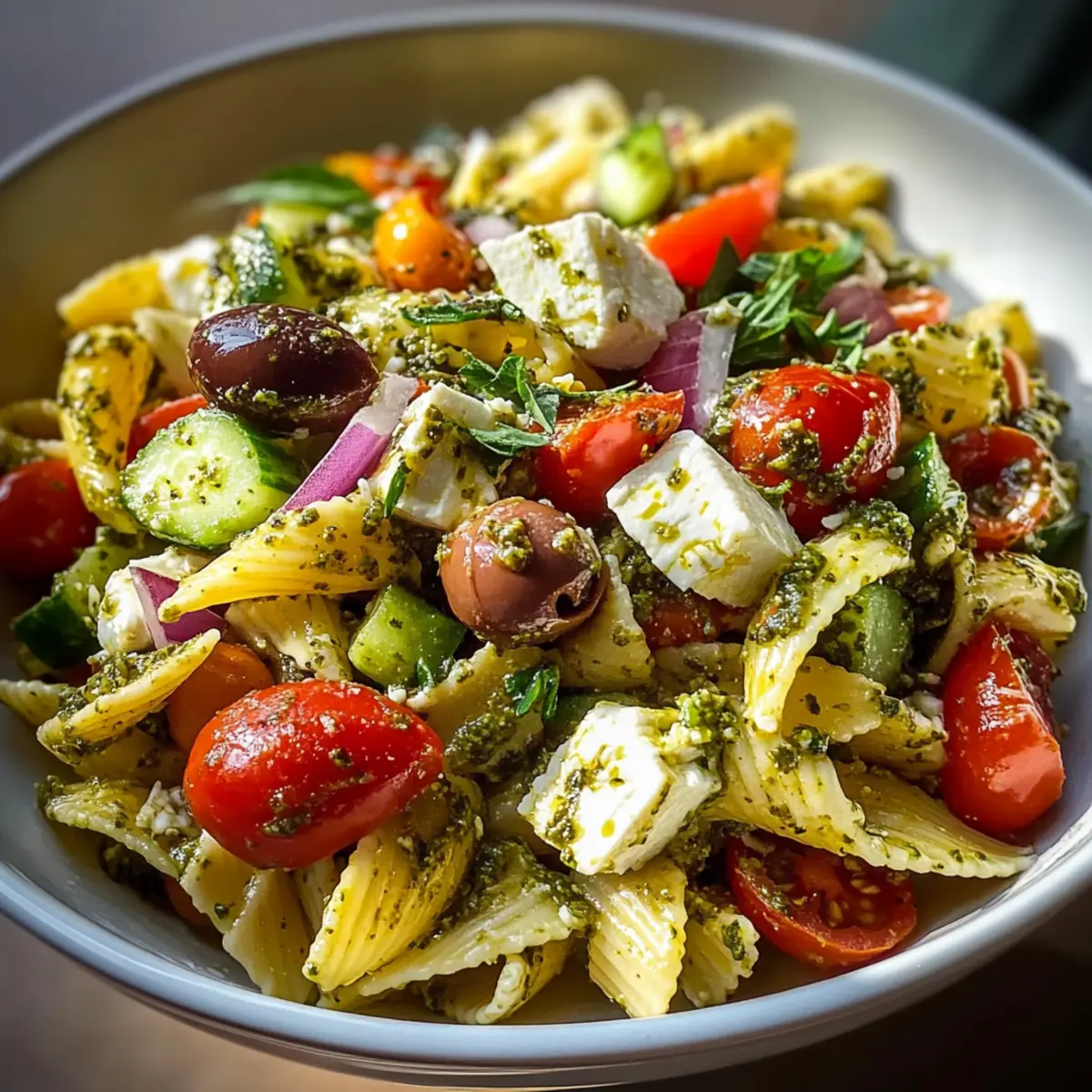 Mediterraner Nudelsalat mit Pesto – Schnell und Lecker