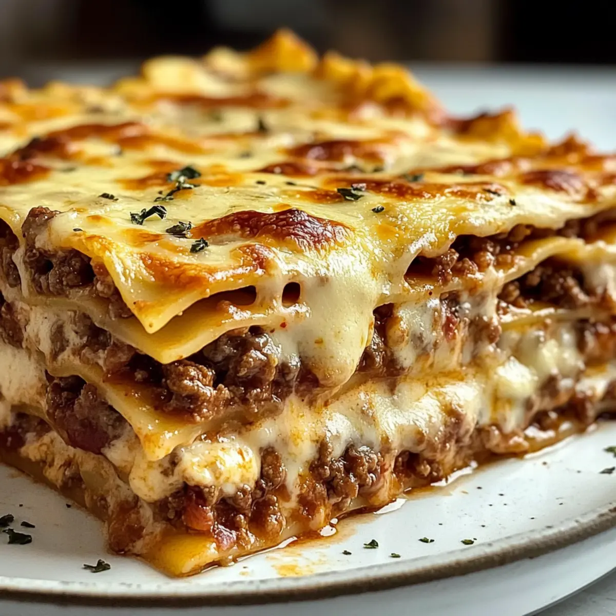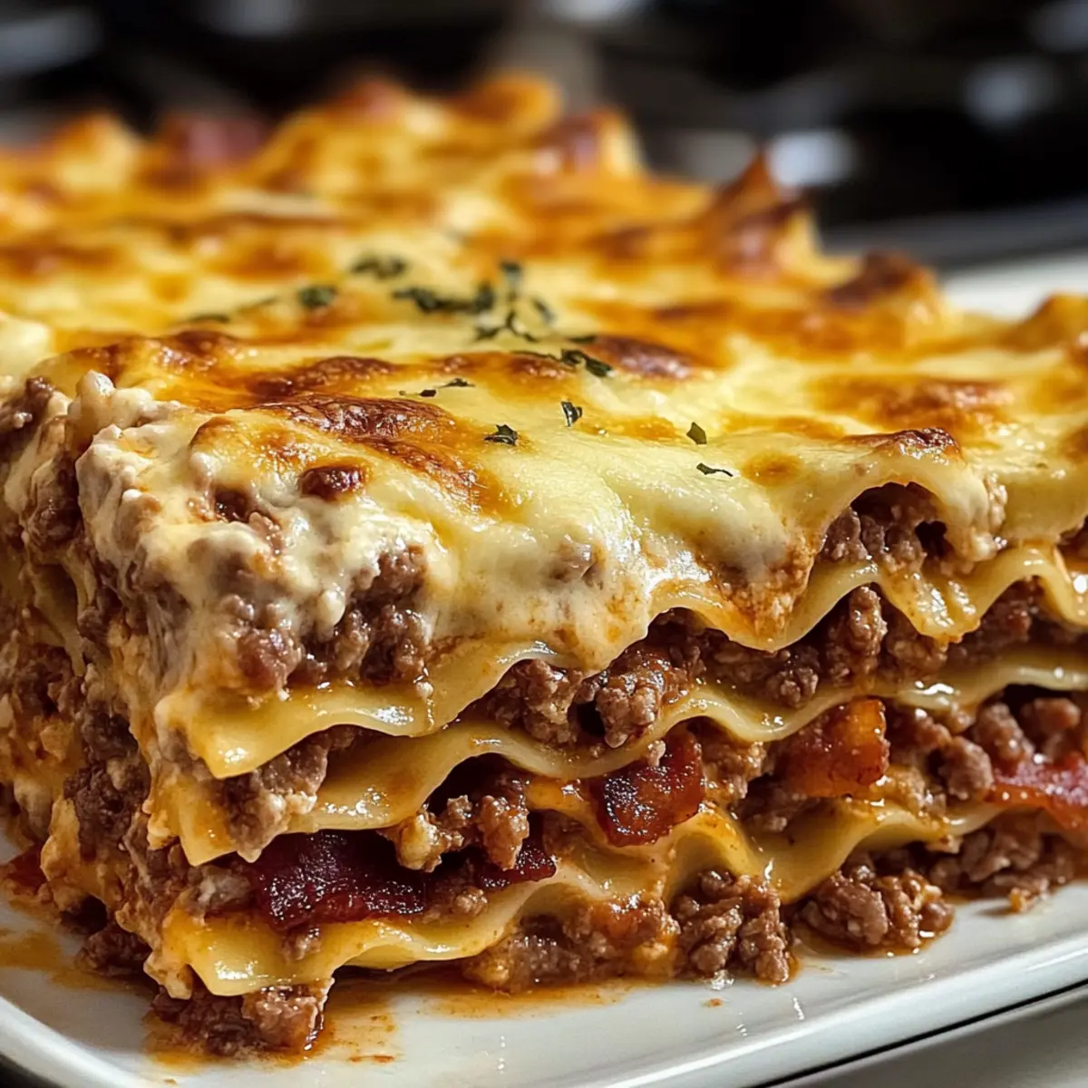 Vielfältige Aromen: Die Kombination aus saftigem Rinderhack, knusprigem Bacon und reichhaltigem Käse schafft eine Geschmacksexplosion in jedem Bissen. Einfache Zubereitung: Auch wenn es aufwändig aussieht, ist die Herstellung unkompliziert und schnell zu meistern. Perfekte Konsistenz: Die cremige Béchamelsoße macht jede Schicht zu einer geschmacklichen Umarmung. Familienfreundlich: Ideal für große Zusammenkünfte – jeder wird nach mehr fragen! Du kannst das Gericht leicht anpassen, indem du frisches Gemüse hinzufügst oder die Käsesorten variierst. Probiere dazu unsere Karamellisierte Sojasoese Ingwer für eine außergewöhnliche Beilage!