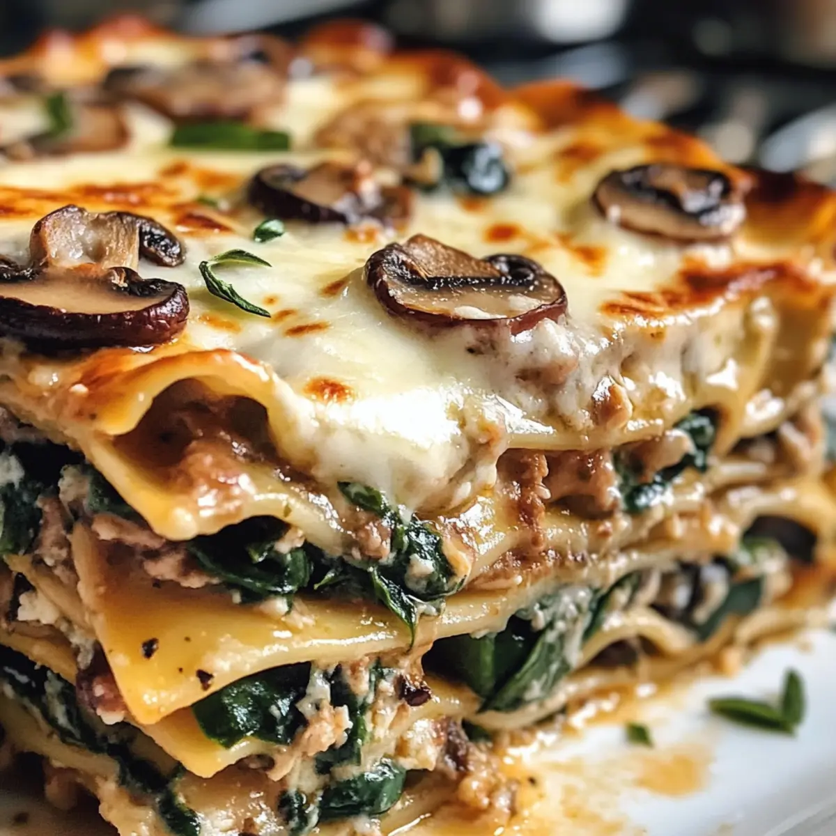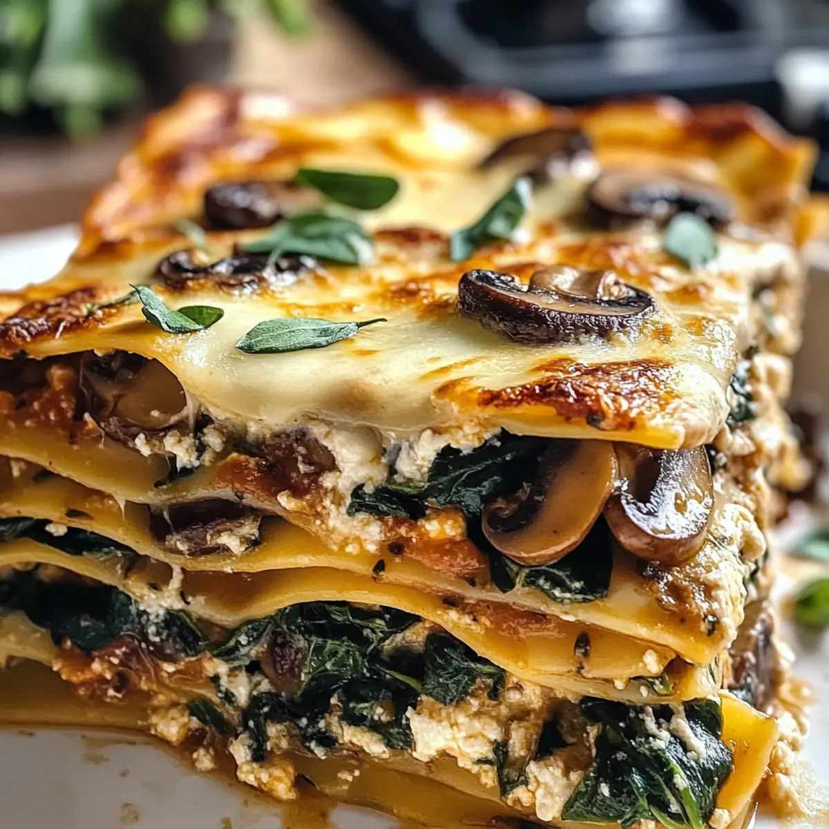 Bereite dich darauf vor, in die köstliche Welt der Pilz- und Spinat-Lasagne einzutauchen!