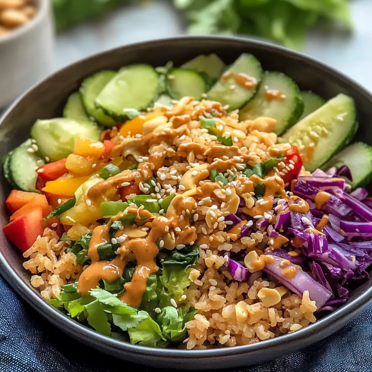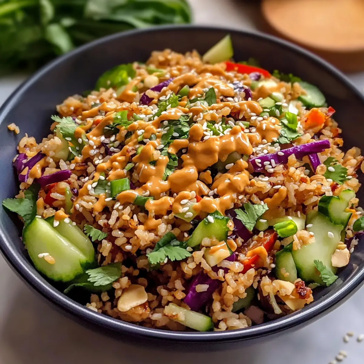 Einfachheit ist hier das A und O: Mit nur wenigen Zutaten und einfachen Schritten zaubern Sie im Handumdrehen einen köstlichen Reissalat. Voller Geschmack: Die Kombination aus nussigem Erdnuss-Sesam-Dressing und frischen, knackigen Gemüsen sorgt für eine Geschmacksexplosion. Vielseitig verwendbar: Perfekt als leichtes Mittagessen oder als Beilage zu gegrilltem Fleisch, dieser Salat passt zu jeder Gelegenheit. Idealer Meal Prep-Begleiter: Die einzelnen Komponenten können separat aufbewahrt werden, sodass Sie jederzeit schnell einen frischen Salat genießen können. Und ganz wichtig: ein Hit bei allen Gästen – dieser bunte Salat wird sicherlich auch Ihre Familie und Freunde begeistern!