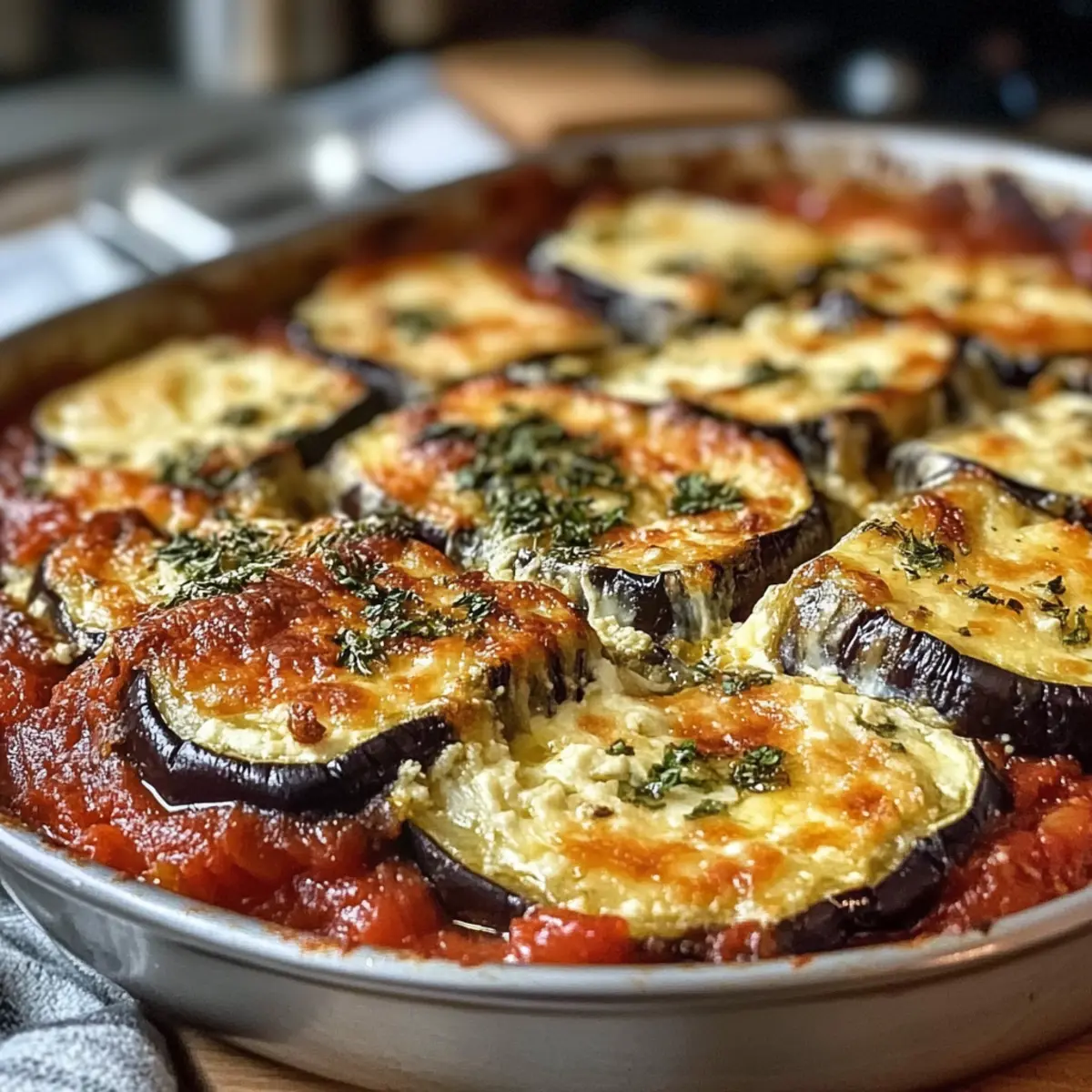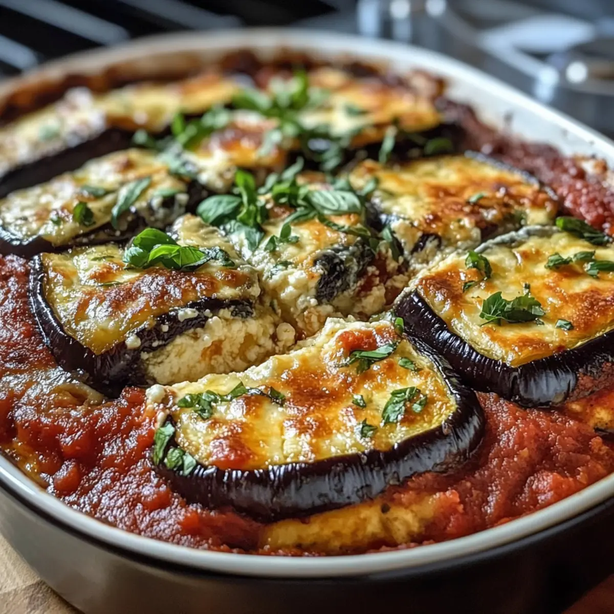Einfachheit: Die Zubereitung ist unkompliziert, was den Auflauf ideal für jede Gelegenheit macht. Vielfalt: Mit zwei Kochmethoden bietet es Flexibilität – backen oder braten, ganz nach Ihrem Geschmack! Geschmacksexplosion: Die harmonische Kombination von cremigem Ricotta, würziger Tomatensauce und zarter Aubergine sorgt für ein wahres Geschmackserlebnis. Geselligkeit: Perfekt für gesellige Abende, wird dieser Auflauf Ihre Lieben begeistern und lange in Erinnerung bleiben. Gesund und nahrhaft: Vollgepackt mit Gemüse ist er eine köstliche Art, mehr pflanzliche Nährstoffe auf den Tisch zu bringen. Und wenn Sie noch kreative Ideen benötigen, werfen Sie einen Blick auf unsere Variationen des Rezepts!