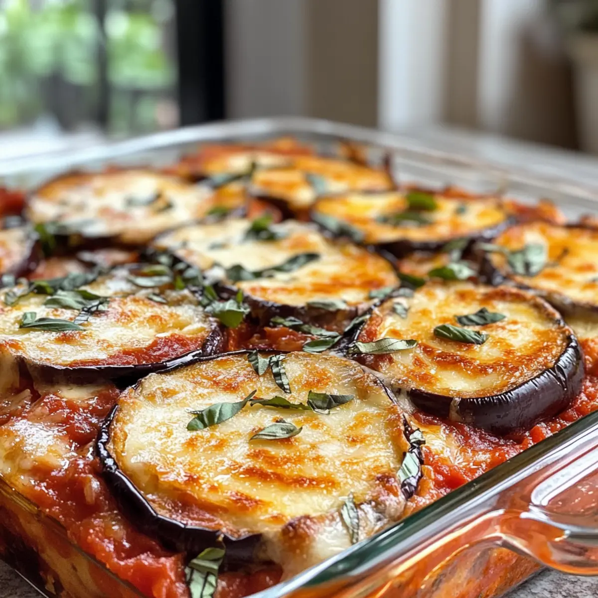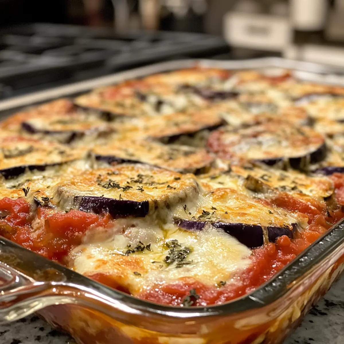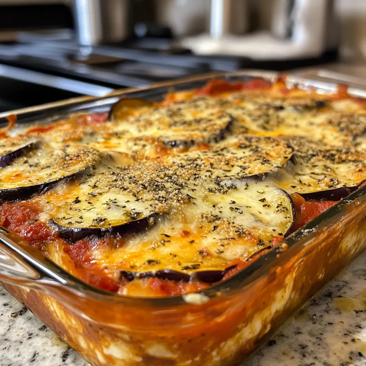 Perfekte Texturen: Die geschichteten Auberginen, der schmelzende Käse und die aromatischen Kräuter bieten ein wunderbares Geschmackserlebnis bei jedem Bissen.