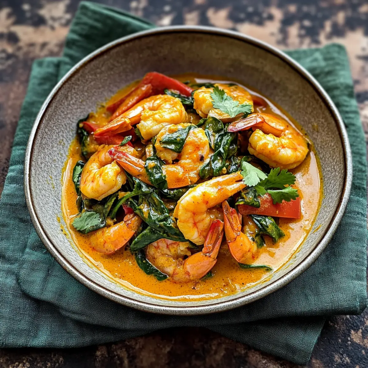 Füge eine Handvoll Babyspinat zum Gericht hinzu und koche den Spinat für etwa 1-2 Minuten, bis er gerade verwelkt ist. Das Hinzufügen des Spinats bringt nicht nur Farbe ins Spiel, sondern auch eine zusätzliche Portion Nährstoffe in dieses köstliche Garnelen-Curry.