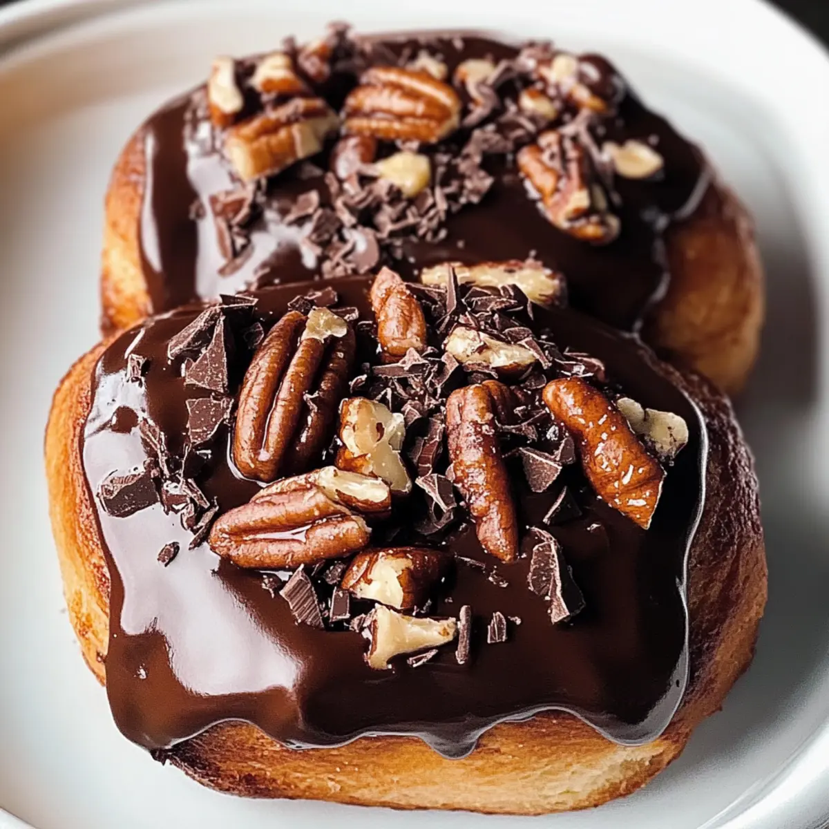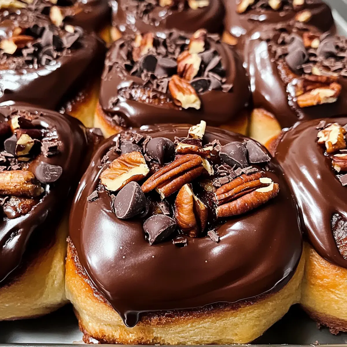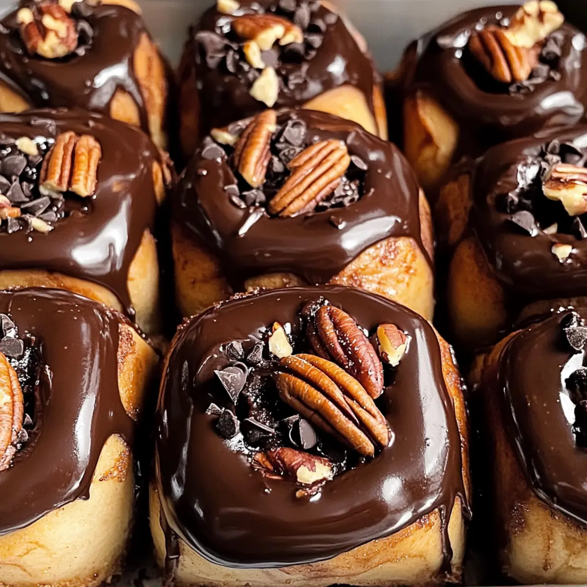 Schokoladen-Pekan-Nuss-Zimtrollen lieben und genießen