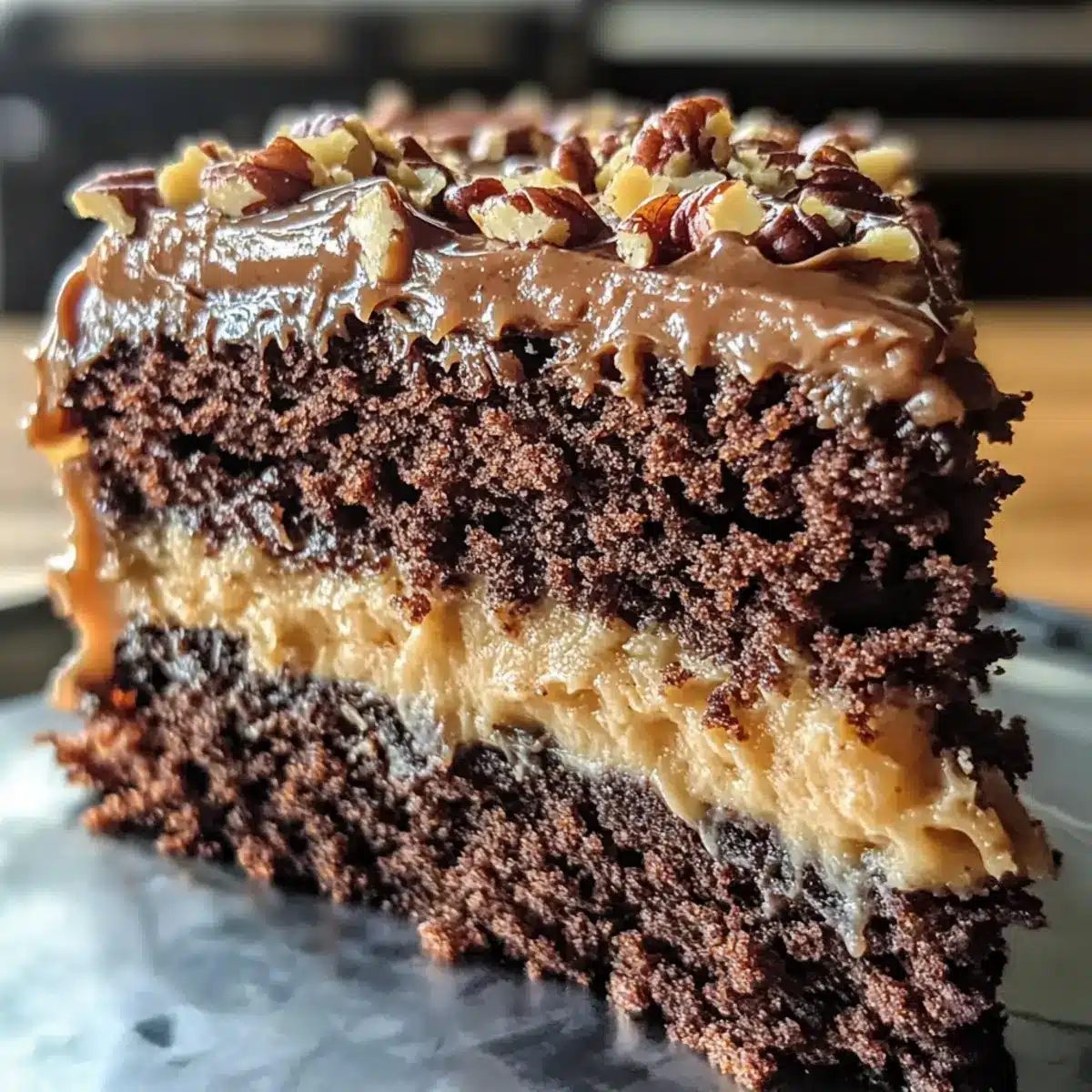 Einzigartiger Geschmack: Der Harmonische Mix aus zart-schmelzendem Schokoladenkuchen und der süßen Kokos-Pekannuss-Creme, die beim ersten Bissen schmelzen, ist unvergesslich.
