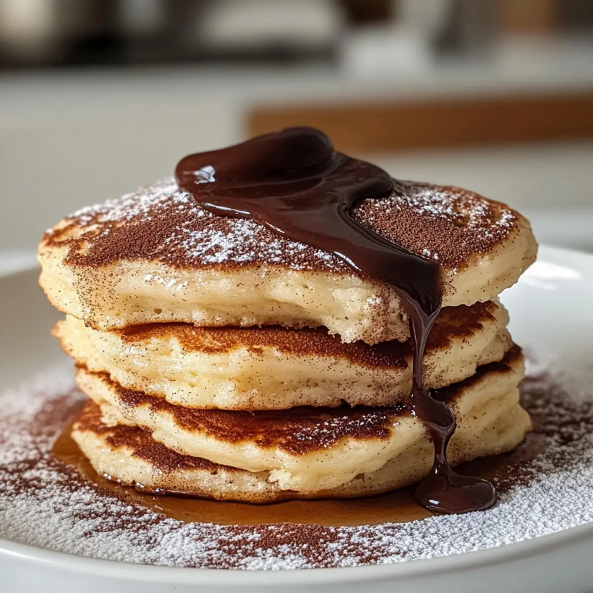 Serviere die Spanischen Churro-Pfannkuchen warm und bestäube sie großzügig mit der Zimt-Zucker-Mischung. Du kannst sie auch mit einem Schokoladensirup beträufeln, falls du das magst. Jetzt sind deine Pfannkuchen bereit, genossen zu werden – perfekt für ein gemütliches Frühstück oder einen besonderen Anlass!