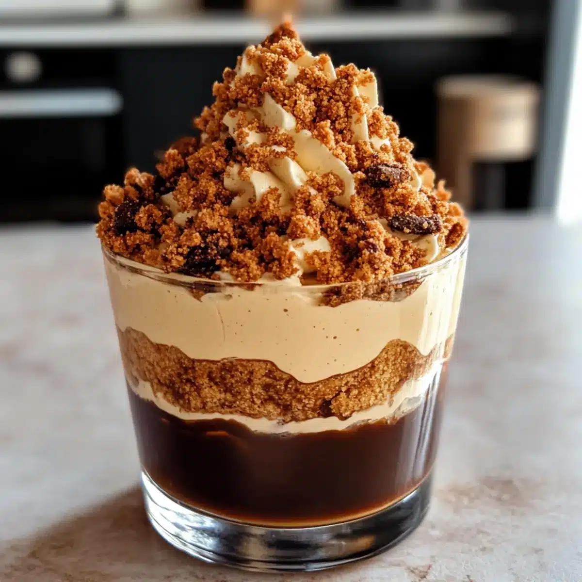 Karamellsauce: Ein Spritzer Karamellsauce zaubert eine süße Note, die wunderbar mit den Kaffeekrümeln harmoniert und das Dessert noch verführerischer macht.