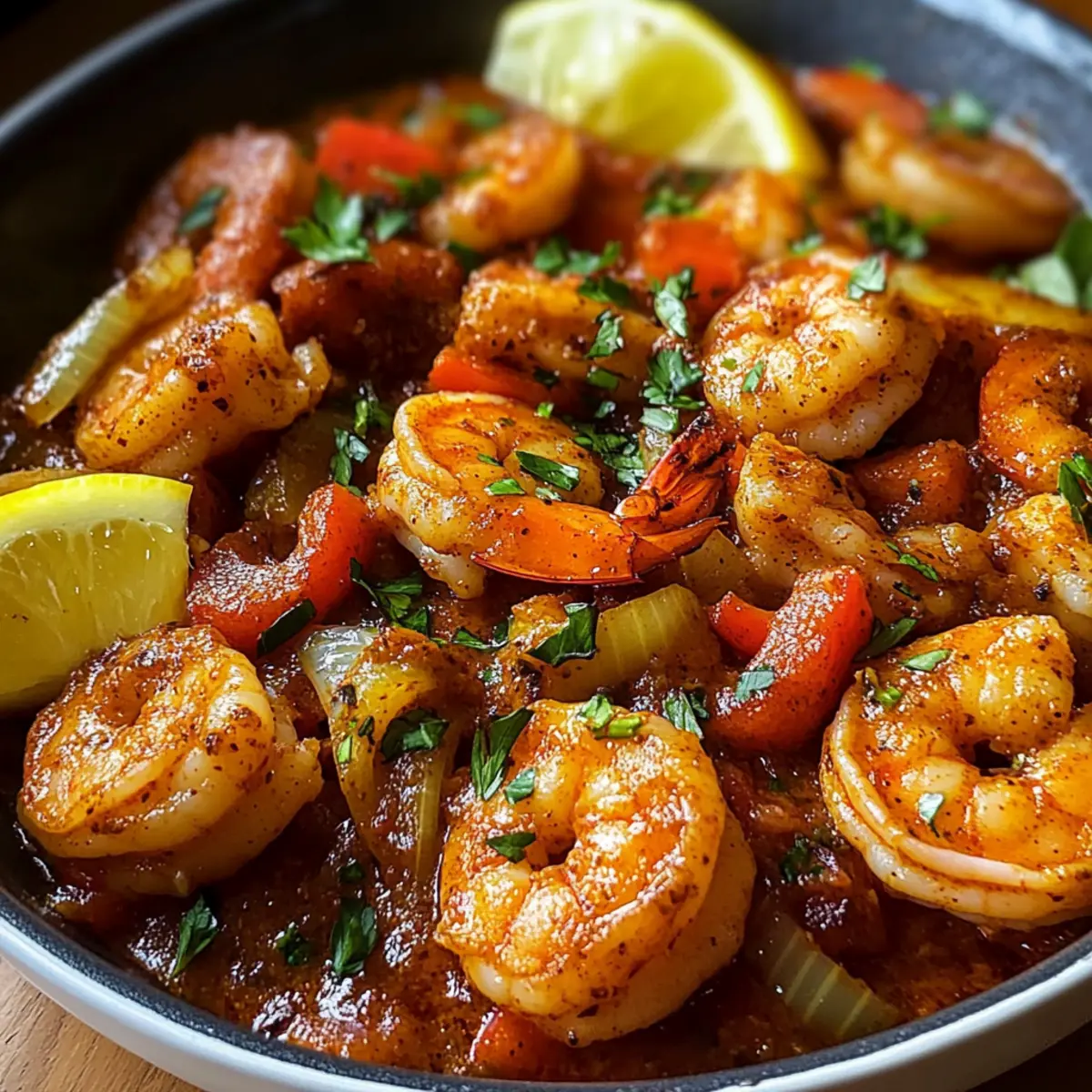Als ich das erste Mal von „Würzige Voodoo Garnelen“ hörte, stellte ich mir vor, wie der Duft einer lebendigen Cajun-Feier durch die Luft wehte. Diese köstliche Kreation bringt das Swingende von New Orleans direkt in Ihre Küche und lässt Ihre Geschmacksknospen tanzen. In nur 40 Minuten kreieren Sie eine beeindruckende Mischung aus saftigen Garnelen und einer rauchigen Tomatensauce, die sowohl Herz als auch Gaumen erfreut. Perfekt für hektische Wochentage oder schicke Dinnerpartys, ist dieses Rezept nicht nur schnell und einfach, sondern auch anpassbar, sodass Sie die Schärfe nach Ihrem Geschmack variieren können. Sind Sie bereit, in den Genuss dieser kulinarischen Reise zu kommen? Lassen Sie uns herausfinden, wie einfach es sein kann, ein Stück Louisiana auf Ihren Tisch zu bringen!