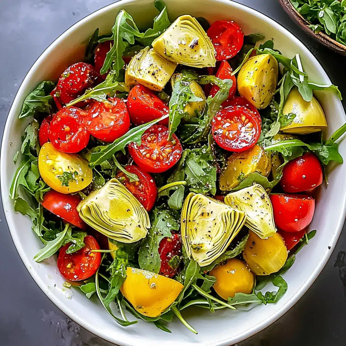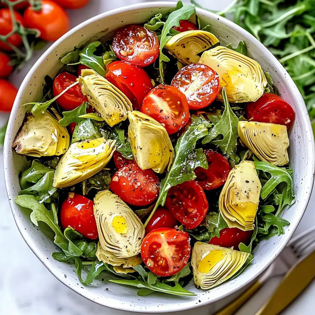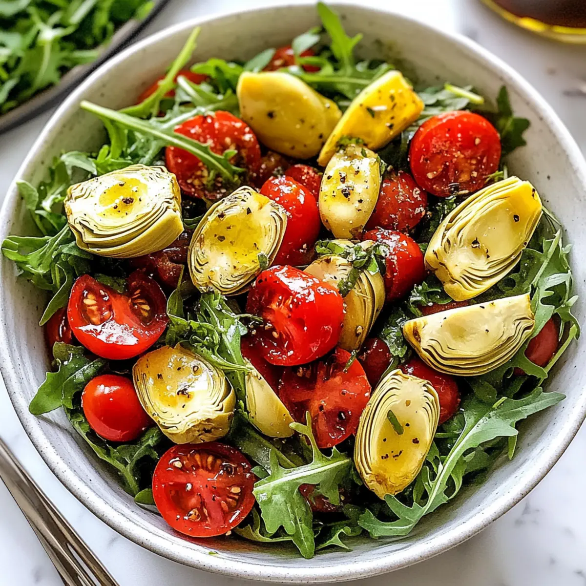 Frische Zutaten machen diesen würzigen Artischockensalat zu einem echten Hit in deiner Küche! Die Kombination von würzigem Rucola, süßen Traubentomaten und herzhaften Artischocken sorgt für ein Geschmackserlebnis, das jeden begeistert. Anpassungsfähig ist er zudem: Füge einfach deine Lieblingszutaten hinzu, um das Rezept zu personalisieren! In nur 10 Minuten zubereitet, ist dieser Salat eine schnelle Lösung für geschäftige Tage. Zudem ist er gesund und passt wunderbar zu gegrilltem Fleisch oder Quinoa-Pilaf. Lass dich nicht entgehen, deinen Gaumen mit dieser gesunden Köstlichkeit zu verwöhnen und erfahre mehr über die Vielseitigkeit gesunder Salate!