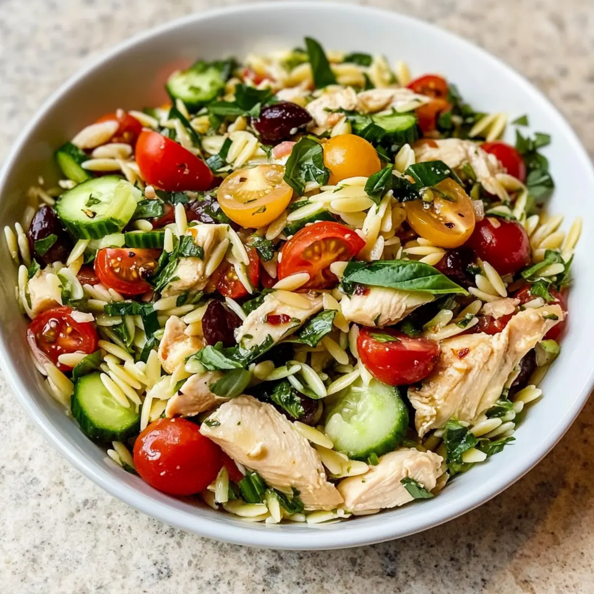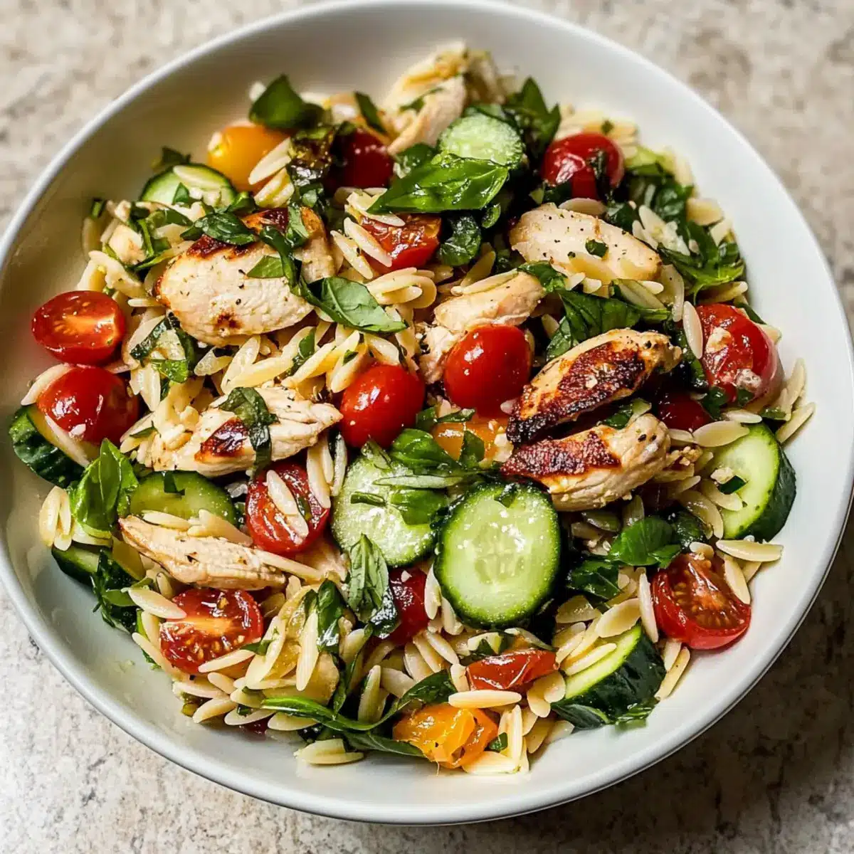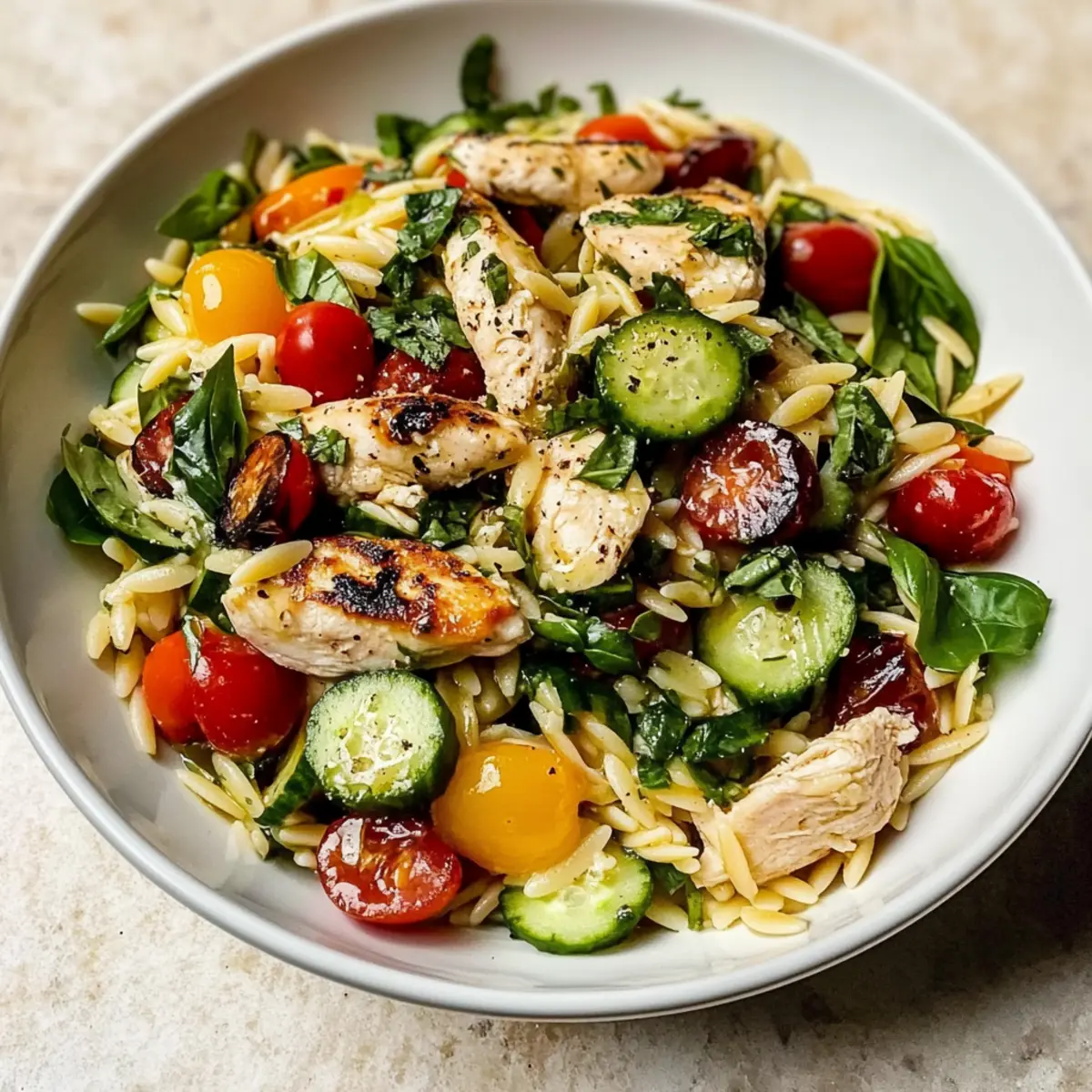 Zitronen-Orzo-Salat mit Hühnchen für den Sommer