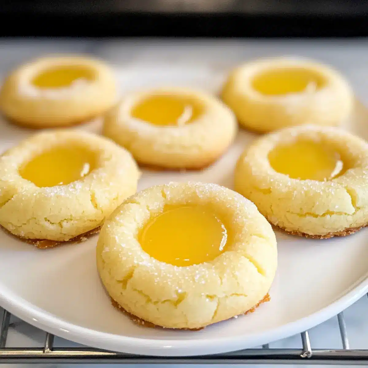 - Nachdem die Kekse vollständig abgekühlt sind, fülle die Vertiefungen großzügig mit der frisch zubereiteten Zitronencreme.